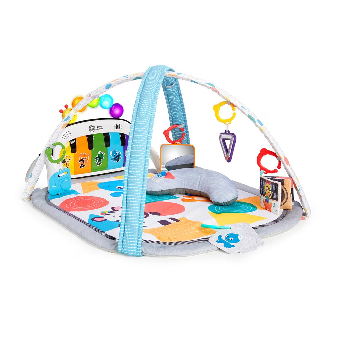 La alfombra de juegos Kickin’ Tunes 4 en 1 estimula el descubrimiento musical y del lenguaje. Tu bebé sentirá el ritmo de la cabeza a los pies, gracias a la tecnología Magic Touch con la que podrá tocar el piano simplemente presionando con el dedo o dándole un puntapié.
