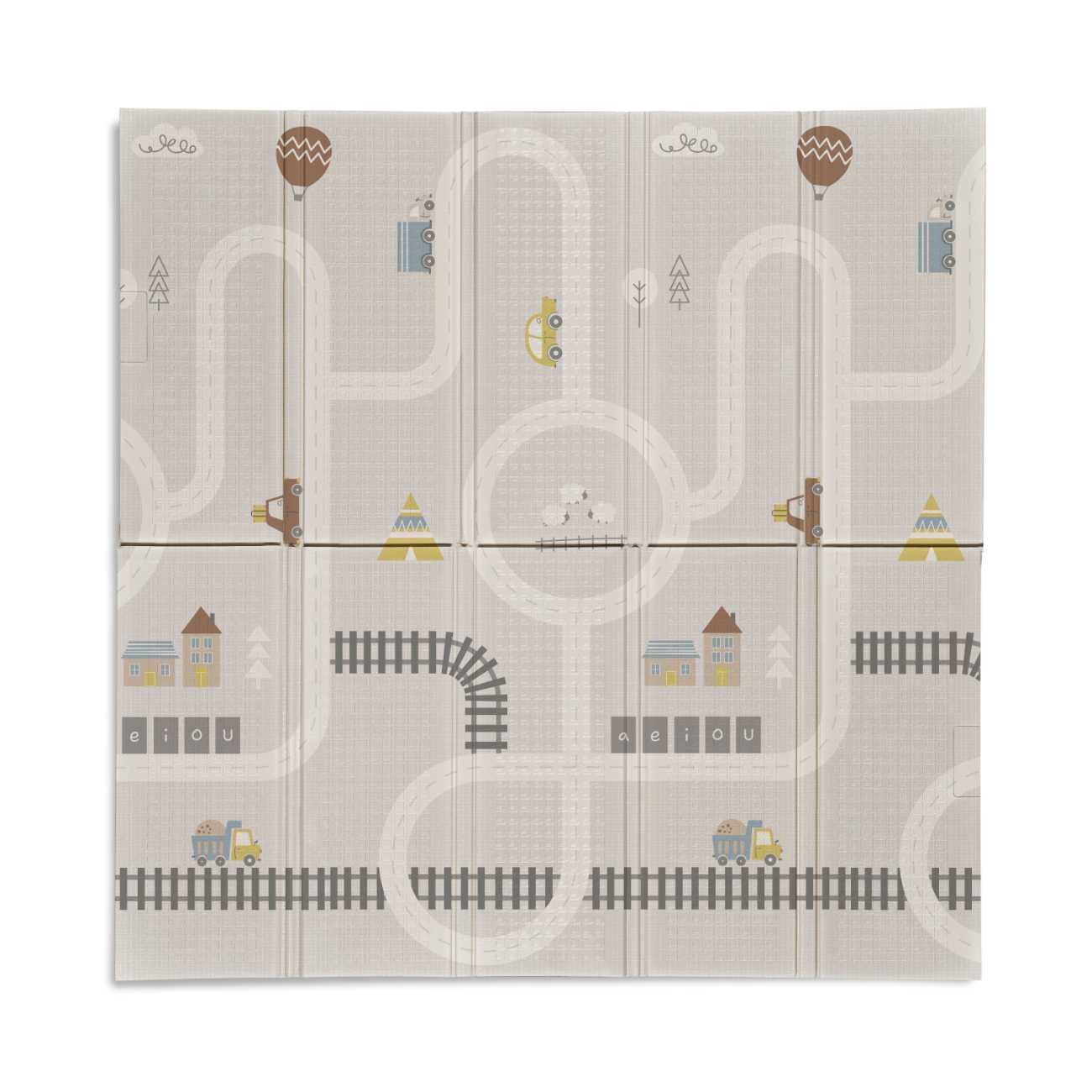 - Esta alfombra de juegos es plegable por lo que ahorra espacio se puede plegar y almacenar fácilmente. En caso de que te la lleves de viaje incluye bolsa de transporte.