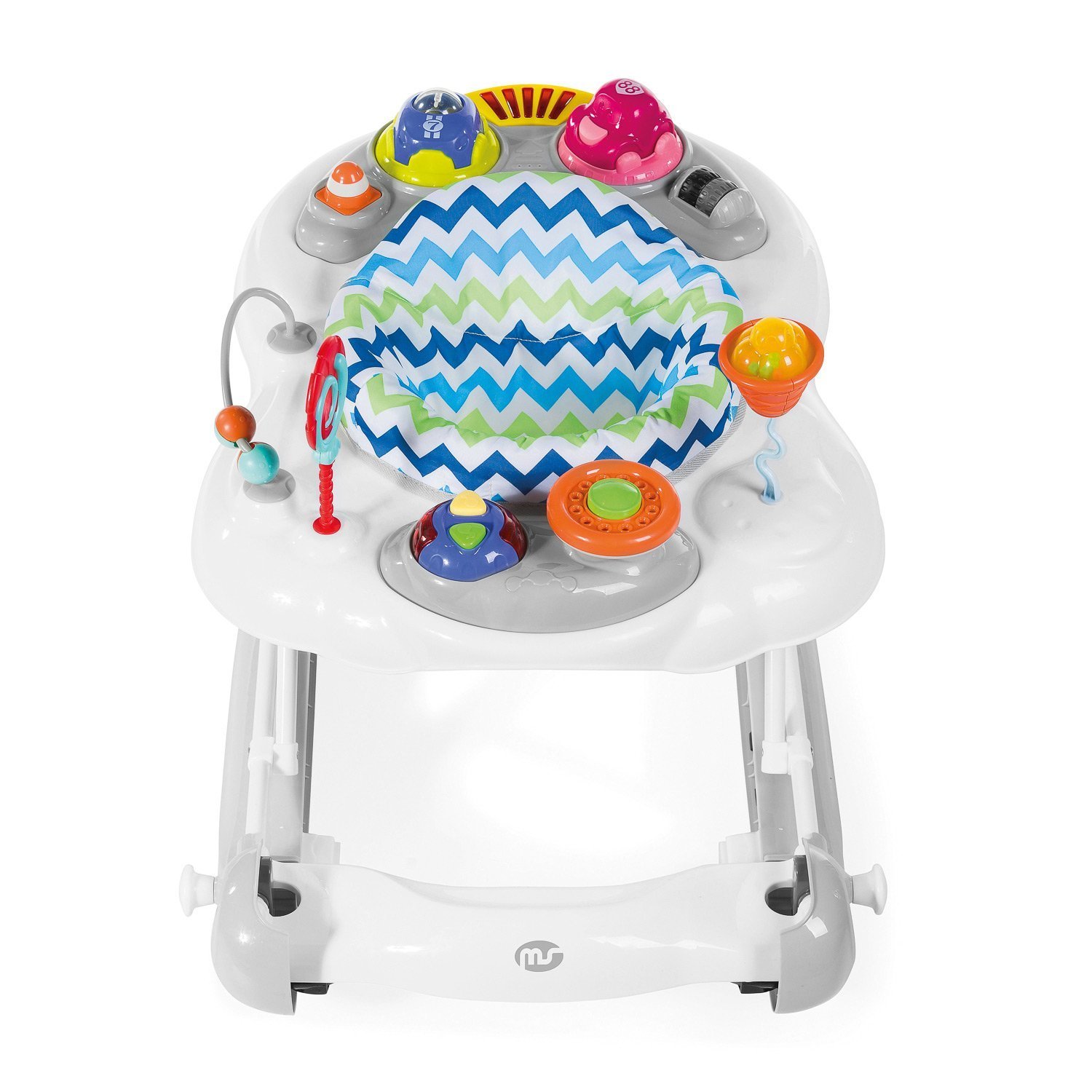 Este andador va dotado con protectores para no dañar los marcos de las puertas y ruedas de silicona giratorias para no dañar el parquet.