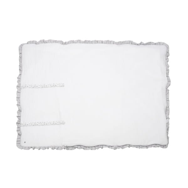 - Está fabricado con una suave muselina estampada en el exterior y muselina lisa en el interior de 100% algodón.