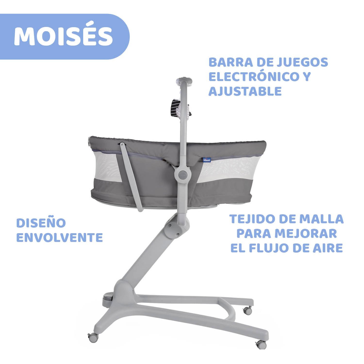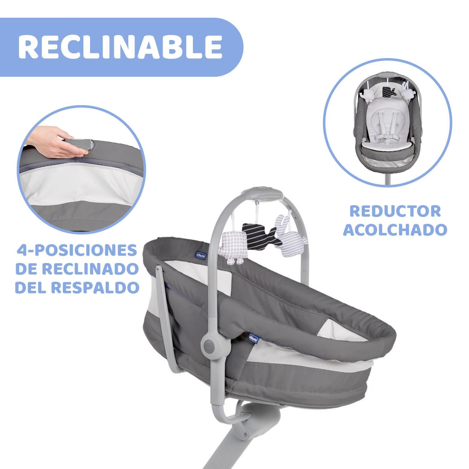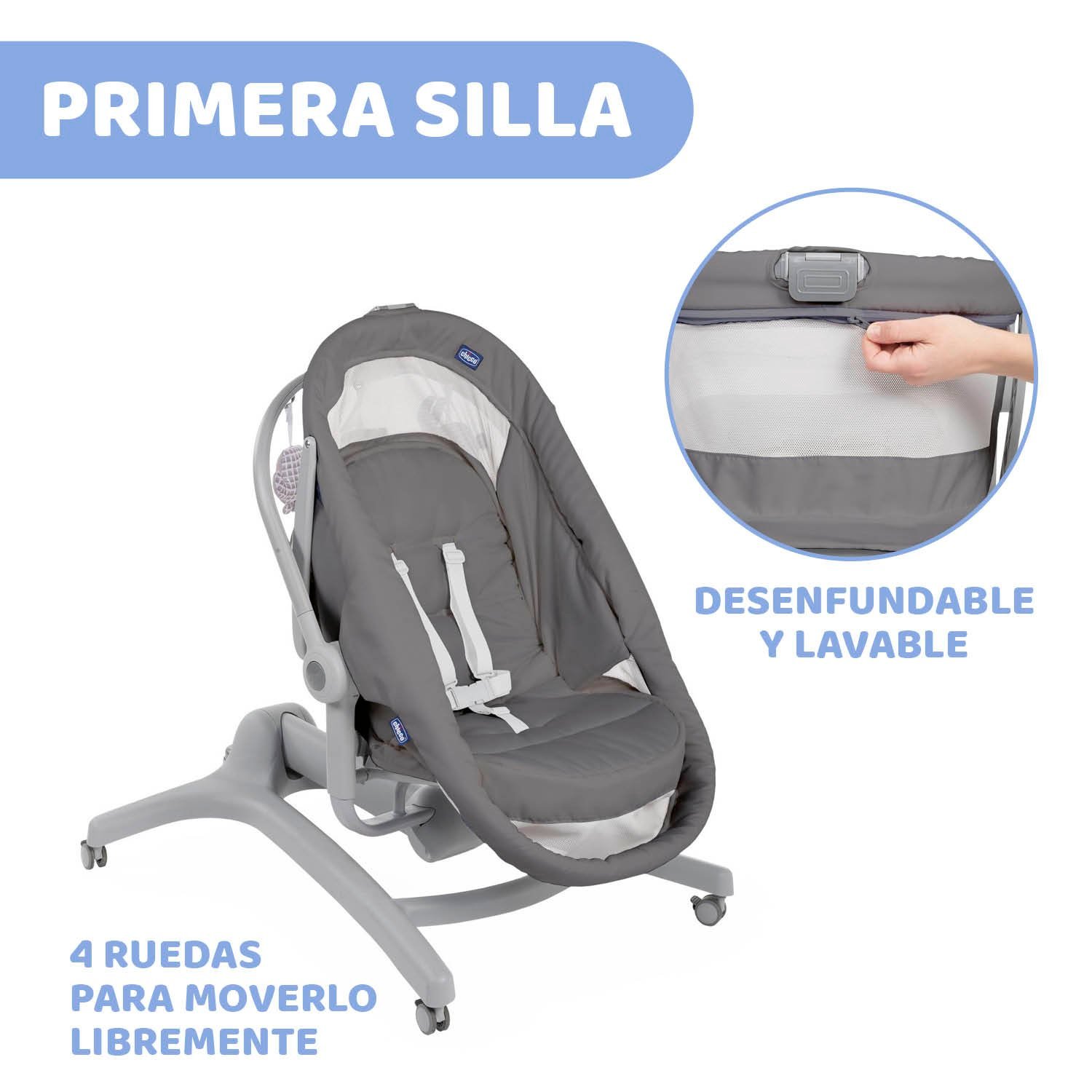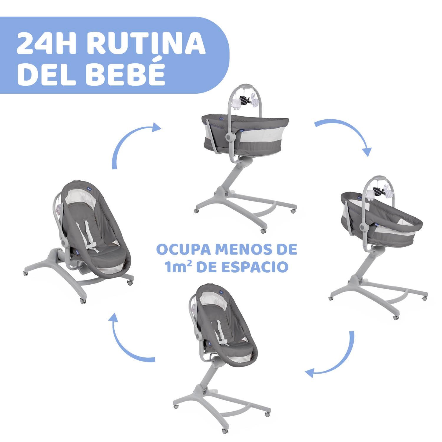 - Con Baby Hug 4 en 1 Chicco ha creado un producto que puede ser utilizado como Moisés de día, Hamaca, Trona o Sillita. Gracias a sus 4 ruedas giratorias con freno y a las «múltiples» regulaciones en altura, este multifunciones de Chicco 4 en 1 es el aliado perfecto para moverte con tu bebé dentro de casa.