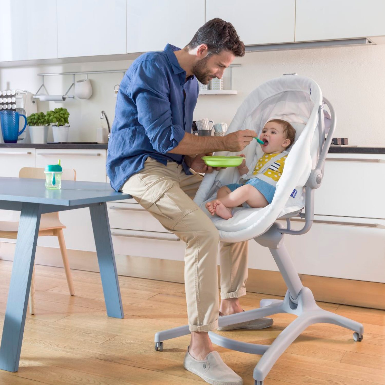 La exclusiva solución 4 en 1 de Chicco para el día a día de tu bebé: moisés, hamaca, trona y sillita.