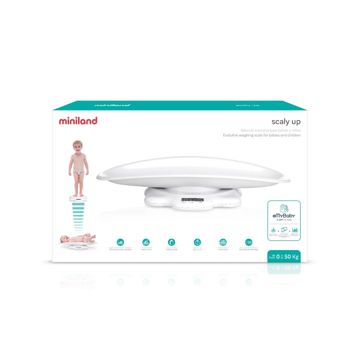 ¡De bebé a niño, el peso siempre controlado! scaly up es una báscula evolutiva con la que podrás controlar el peso de tu bebé en todas las etapas de crecimiento de forma precisa gracias a sus 2 bandejas intercambiables y sus funciones de hold y tara. Regístrate en la app eMyBaby e introduce manualmente todas las mediciones para llevar el seguimiento de tu bebé.