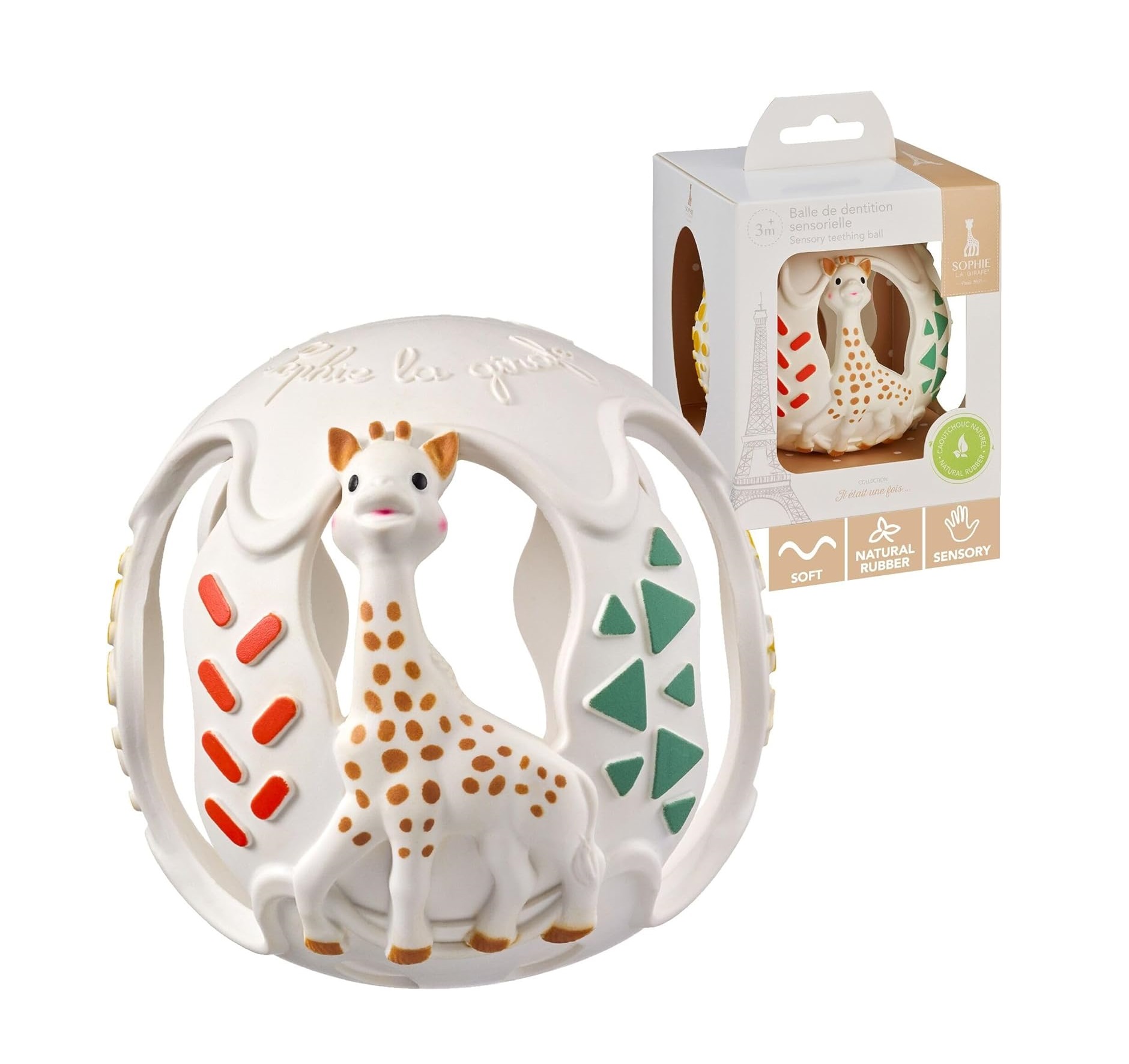 - La Bola de Dentición Sensory Sophie la Girafe es un accesorio esencial para el desarrollo oral y sensorial de los bebés, fabricado con un 100% de caucho natural de hevea. Diseñada especialmente para niños a partir de 3 meses, esta bola ofrece una experiencia táctil única que estimula los sentidos y alivia las molestias asociadas con la dentición.