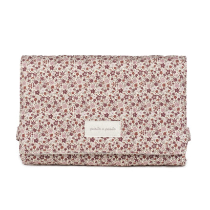 - La bolsa para carrito de bebé o el bolso para silla de paseo Cherry de Pasito a pasito es un modelo único, elaborado en loneta de algodón 100% con un delicado estampado de flores.