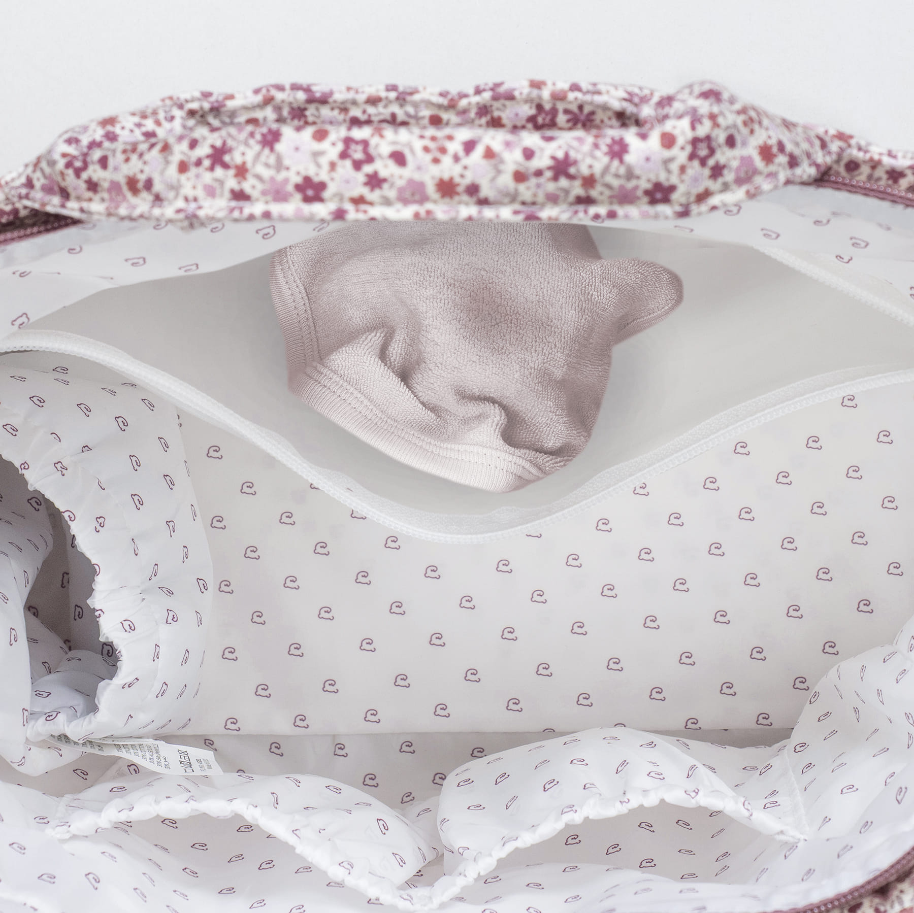 - Entre los bolsillos hay un bolsillo térmico para biberones y un bolsillo plastificado para la ropa mojada.