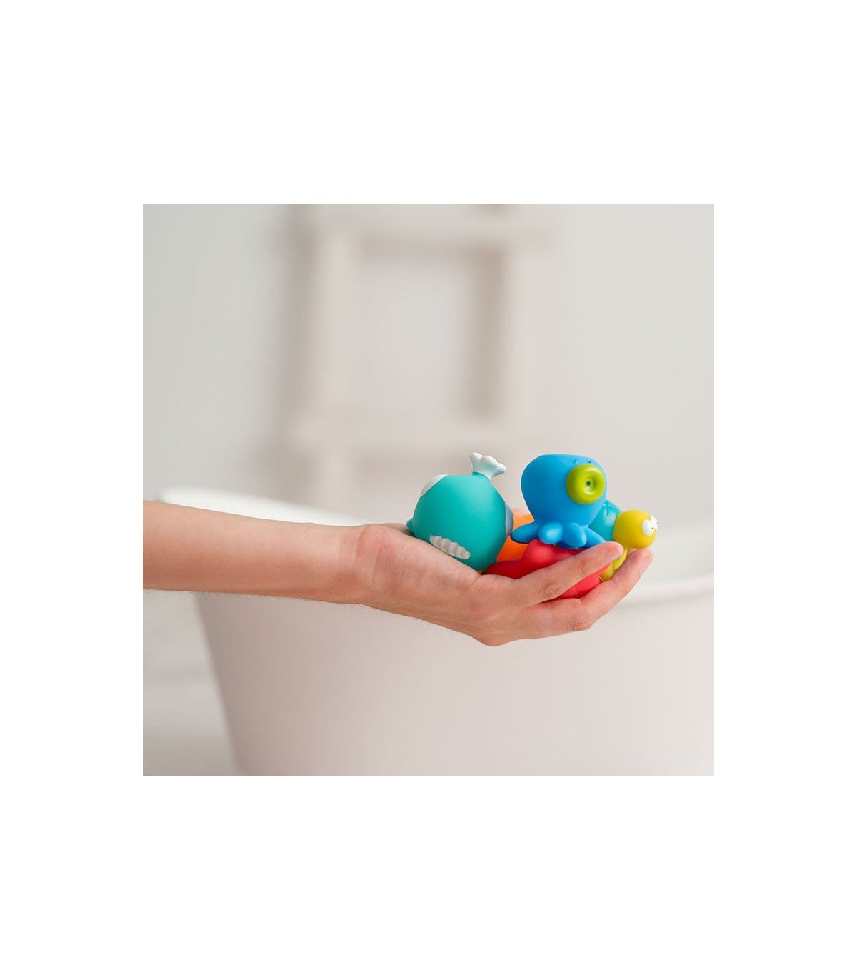 ¡Diversión en el baño! Gracias a sus alegres colores y formas redondeadas, el bebé desarrollará sus habilidades cognitivas a la vez que se divierte.