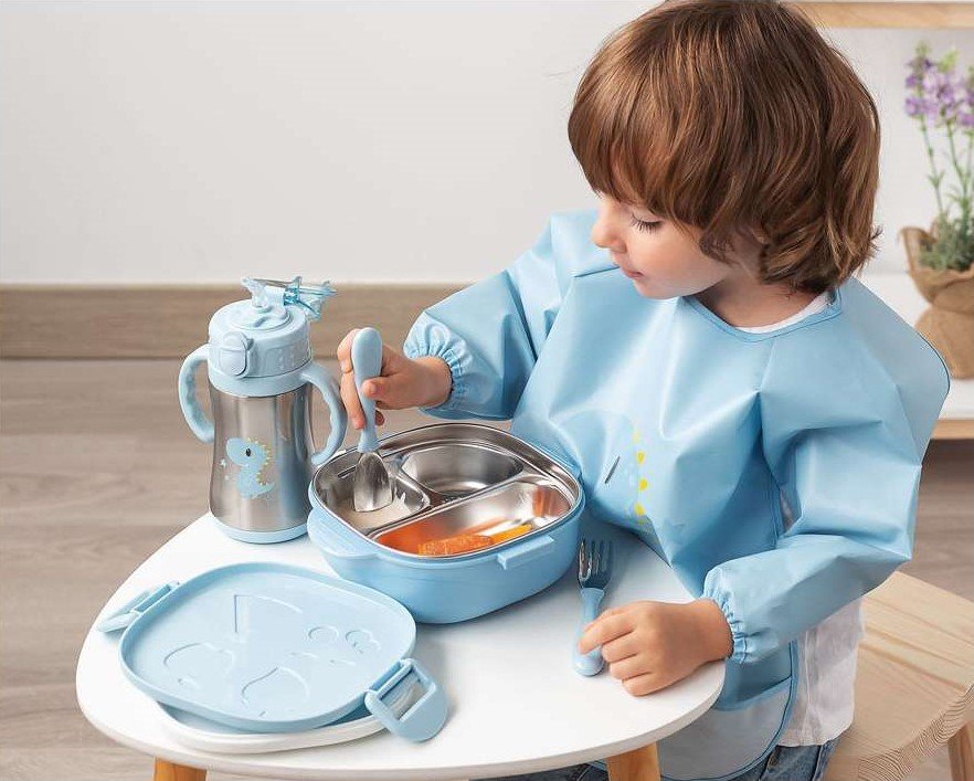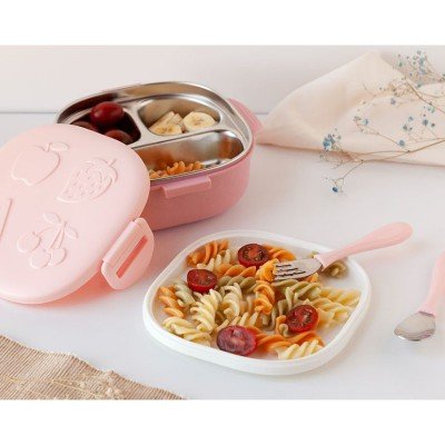 Tiene 3 compartimentos de acero inoxidable. Lo cual le permite una mejor limpieza y vida útil. Gracias a que los compartimentos están individuales, los alimentos se mantienen separados y organizados, sin mezclarse.
