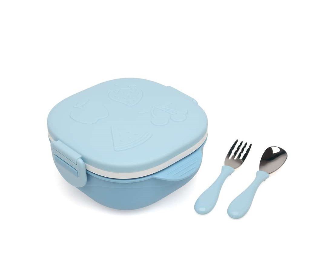 Dentro de nuestra caja se incluyen los cubiertos (tenedor y cuchara) y un plato adicional.