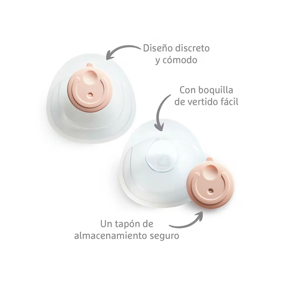 - Copas de silicona suave que se ajustan cómoda y discretamente en tu sujetador para recoger la bajada de leche, preservando cada preciosa gota de leche materna.