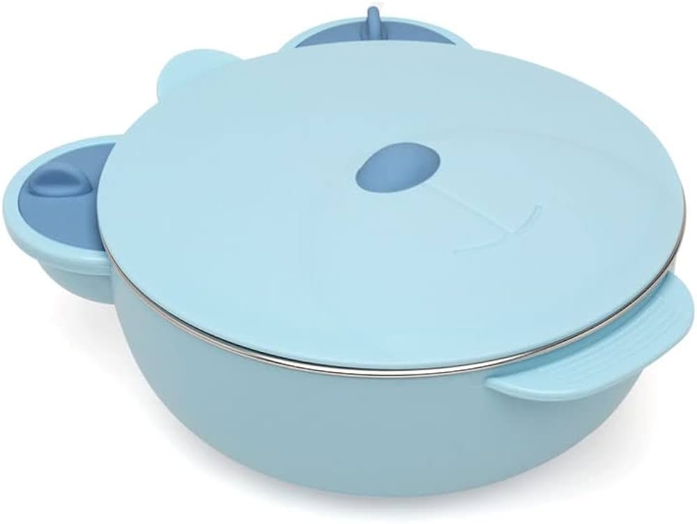 Este cuenco térmico está lleno de ventajas y buenas ideas. Nuestro cuenco con forma de oso es muy práctico y divertido ya que tiene varias funciones que te ayudan a conservar mejor los alimentos y a mantener la temperatura gracias a su fondo térmico. Sus orejitas se abren y puedes echar agua caliente en su depósito para que mantenga más y mejor el calor de la comida.