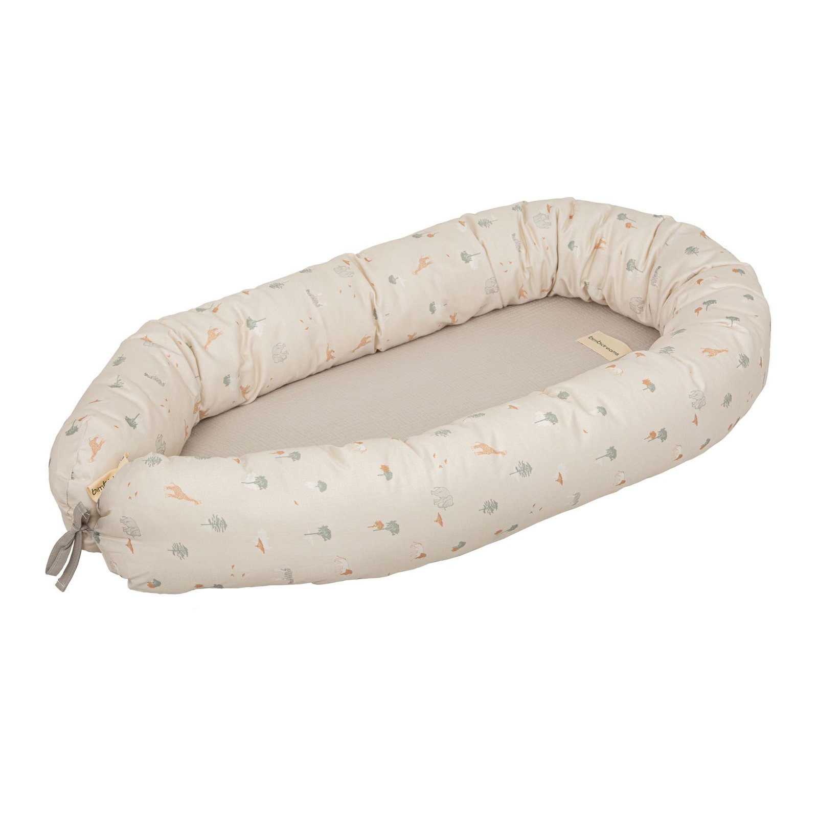 El nido de la colección Nairobi de Bimbidreams es un complemento perfecto para los primeros meses del bebé. Se distingue por su dulce estampado de jirafas y motivos de inspiración animal que aportan ternura y un toque de aventura natural a la decoración. Es un diseño unisex, perfecto tanto para niño como para niña, y combinable con el resto de los textiles de la colección. Su forma envolvente con bordes acolchados proporciona una sensación de protección similar al vientre materno, ideal para descansar, dormir o como reductor de cuna.