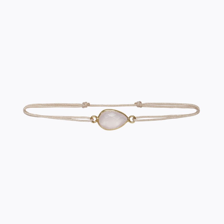 • Cada pulsera está adornada con una delicada gota de cuarzo rosa, una piedra que se distingue por su suavidad y su energía tranquila, llena de amor, ternura y armonía.