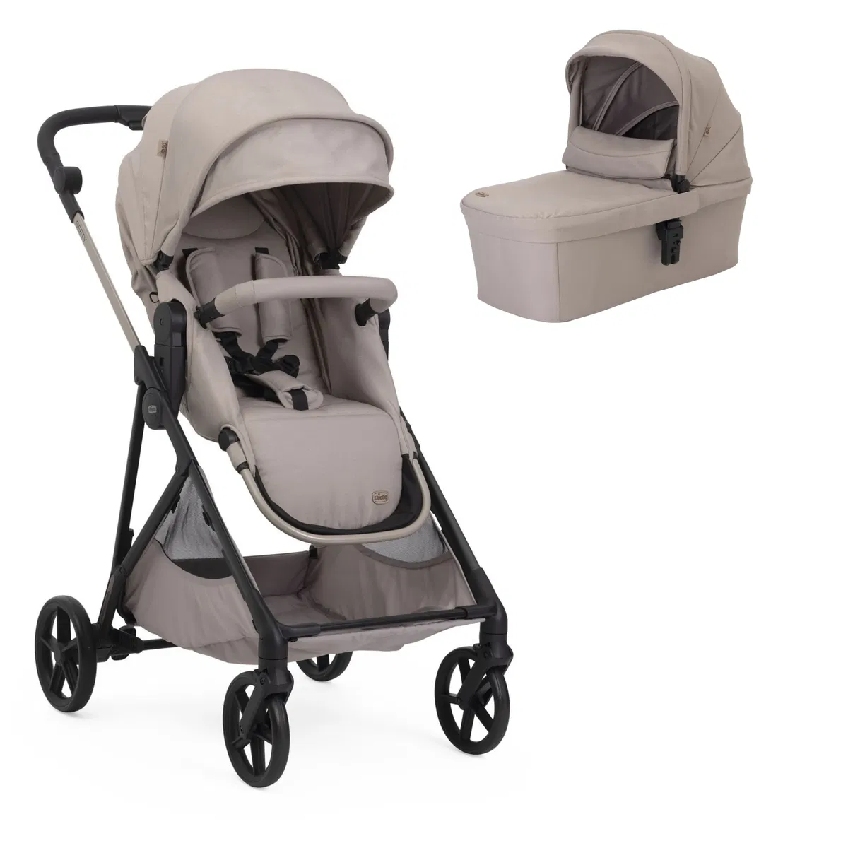 LIGERO E INTELIGENTE: El capazo y cochecito Seety es ideal durante los primeros meses de vida del bebé: fácil de transportar gracias al asa integrada, el capazo con cochecito Seety te sorprenderá con un estilo moderno y fresco. Los acabados refinados, los detalles coloridos y los tejidos elegantes harán que tus paseos sean aún más modernos.