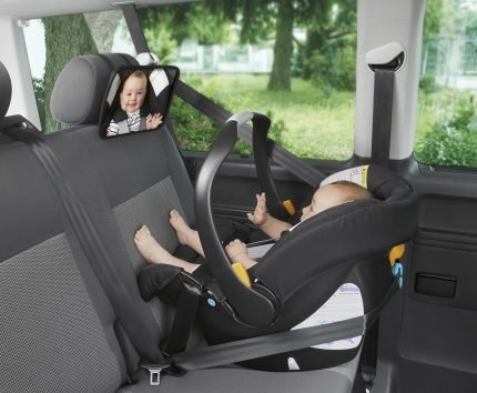 - Espejo retrovisor del asiento trasero, que puede girar en todas las direcciones.