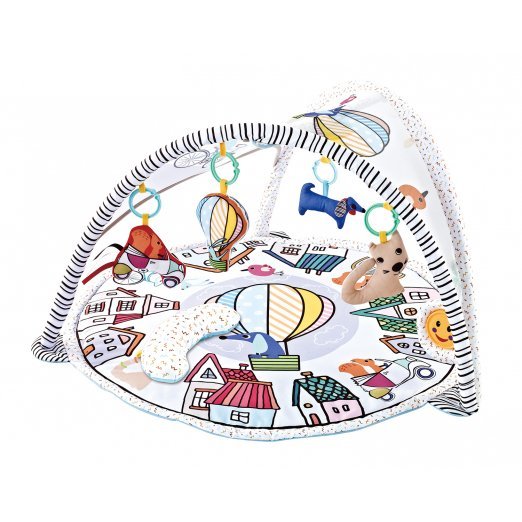 • Coloridos detalles de actividad: anillas de plástico, chirriador, papel arrugado y otros;