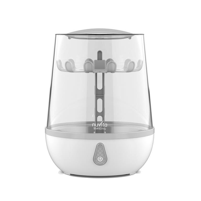 Esterilizador Eléctrico Pro digital de vapor Nuvita para hasta 6 biberones. Mantendrá los objetos esterilizados hasta 24 horas, cuenta un botón digital inteligente que muestra una cuenta regresiva cada 8 horas para informarle si sus objetos aún están esterilizados y por cuánto tiempo.
