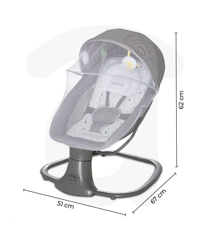 La hamaca balancín Rocker Kahlo de Asalvo es apta para niños desde el nacimiento hasta los 3 años, incluye conexión bluetooth con la cual podrás reproducir música, así como mosquitera y arnés de seguridad de 5 puntos.