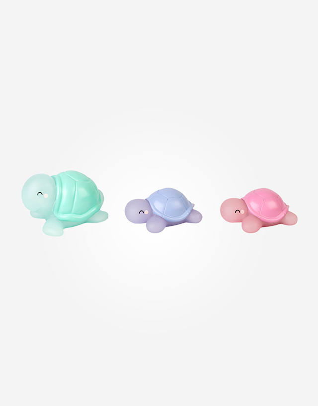 Juguetes de baño de tres tortugas la mar de adorables. Con ellos el baño se convertirá en el momento más alegre y divertido del día. ¡Cambian de color para avisarte de la temperatura del agua!