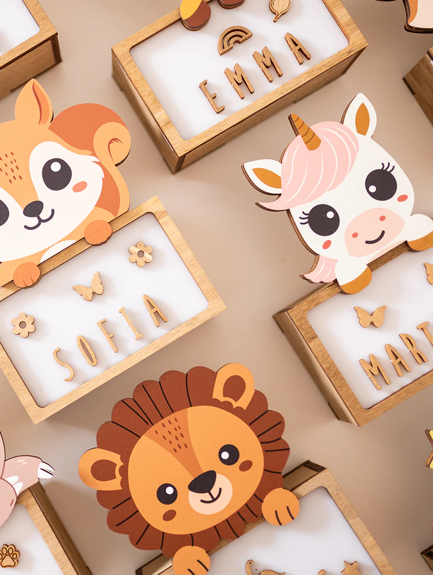 - PARA PERSONALIZAR EN CASA CON AMOR (INCLUYE KIT DE LETRAS, DIBUJOS E INSTRUCCIONES): Fácil de personalizar en 2 minutos. Si es para regalo, les hará mucha ilusión personalizarla personalmente para su bebé, niño/a. Un buen rato familiar para hacer que su lámpara animal de madera luminosa sea única al darle un toque personal. Incluimos kit especial con letras, sencillas instrucciones y adhesivos de madera sostenible.