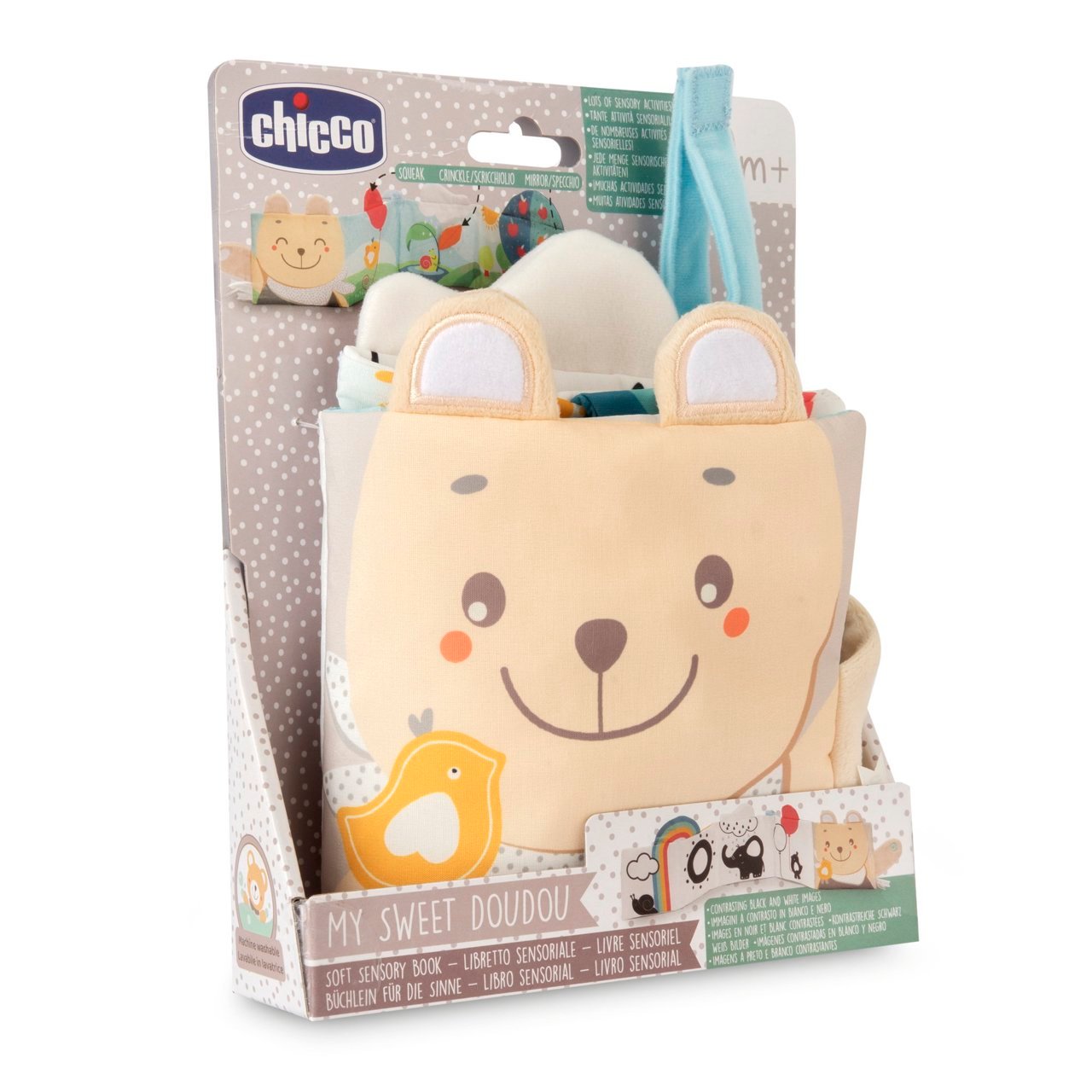 - Por otro lado, imágenes coloridas enriquecidas con elementos interactivos capturan la atención del bebé y, a medida que crecen, estimulan sus sentidos: un espejo, un sonajero y material arrugado.