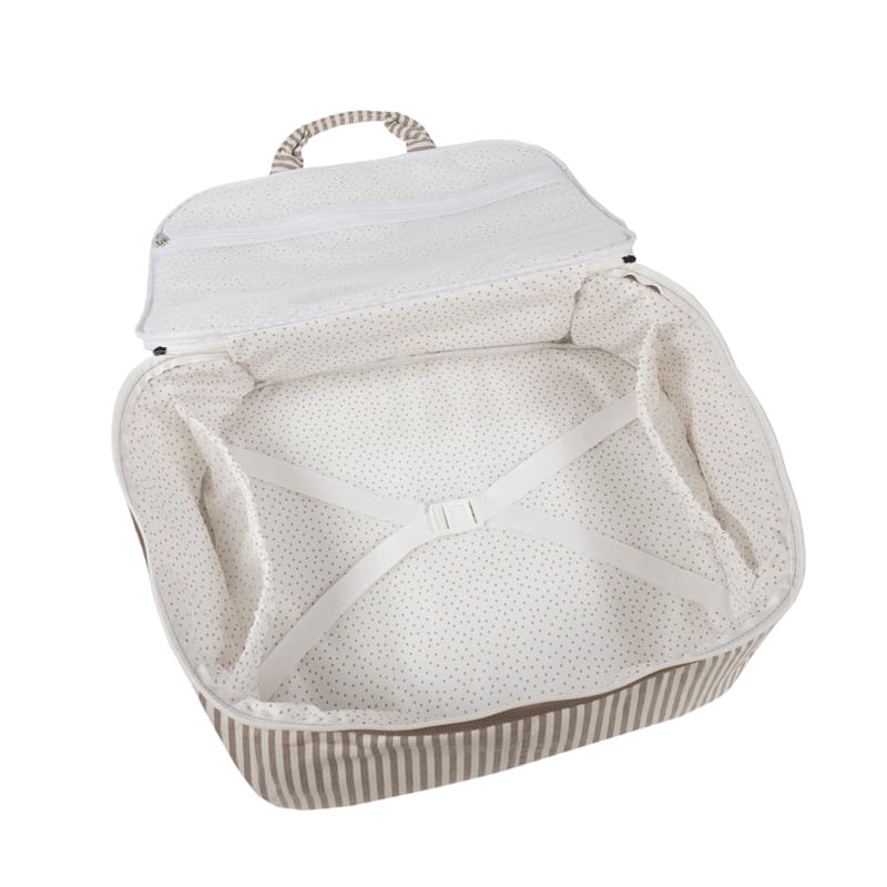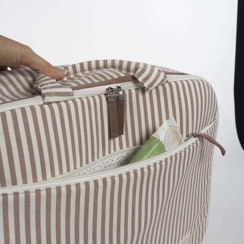 - La maleta de bebé Praliné Rayas es un bolso especialmente diseñado para el momento más importante del embarazo, que es la llegada de tu bebé, momento en el que hay un montón de cosas que preparar.