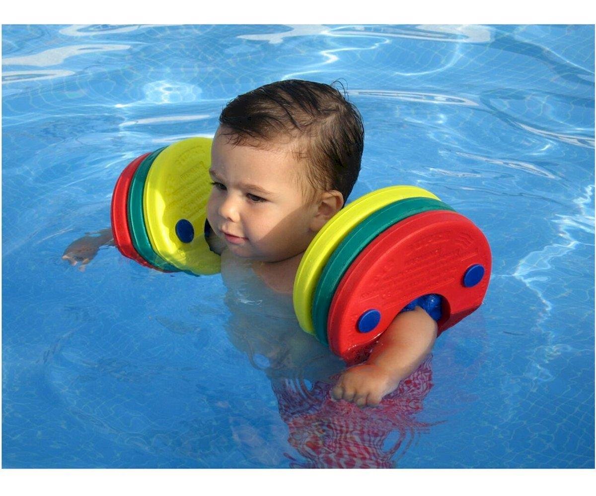 - Usaremos 3, 2 ó 1 disco en cada brazo en función de la edad y peso del niño. A partir de este punto iremos quitando progresivamente manguitos de cada brazo hasta que sin darse cuenta, y siempre encontrándose el niño con estabilidad y seguridad en el agua, flota por sí solo.