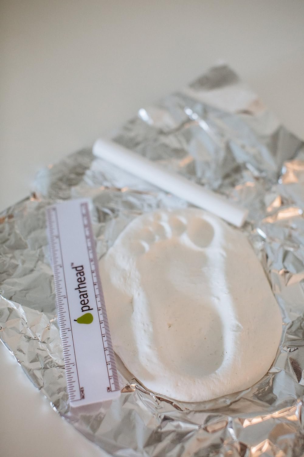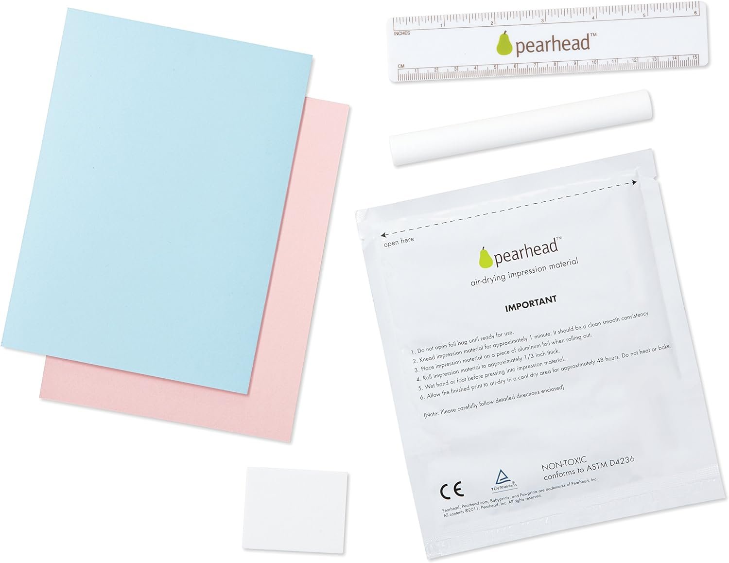 - Incluye material de impresión 100% seguro para el bebé, rodillo de rodillo, regla moldeadora de arcilla y un fondo reversible rosa/azul.