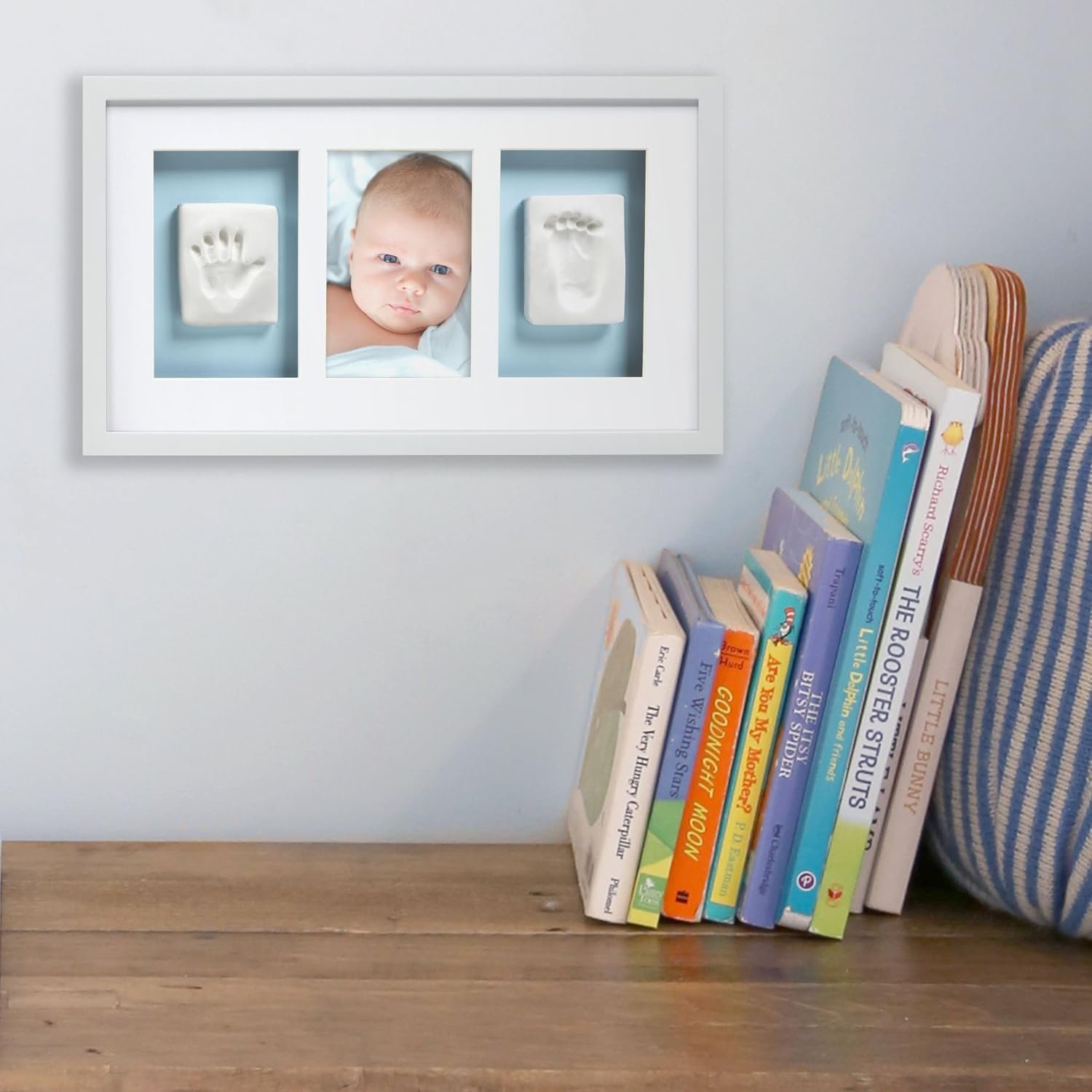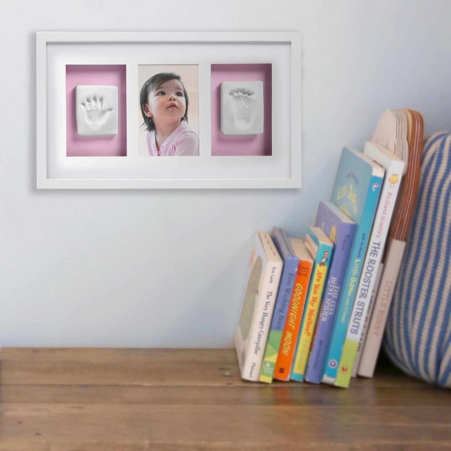 - Marco sofisticado acabado a mano para mostrar las huellas de manos y pies junto con tu foto favorita.