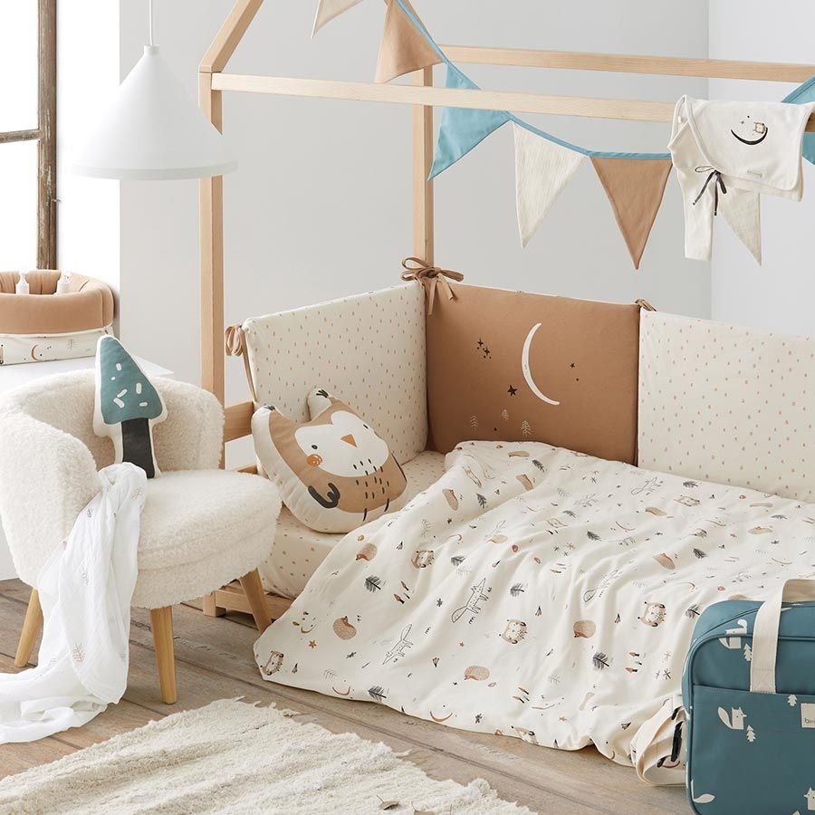 - Presenta un alegre estampado inspirado en los bosques para celebrar la belleza de la naturaleza con exquisitos detalles en colores neutros, crema y avellana a juego con la colección.