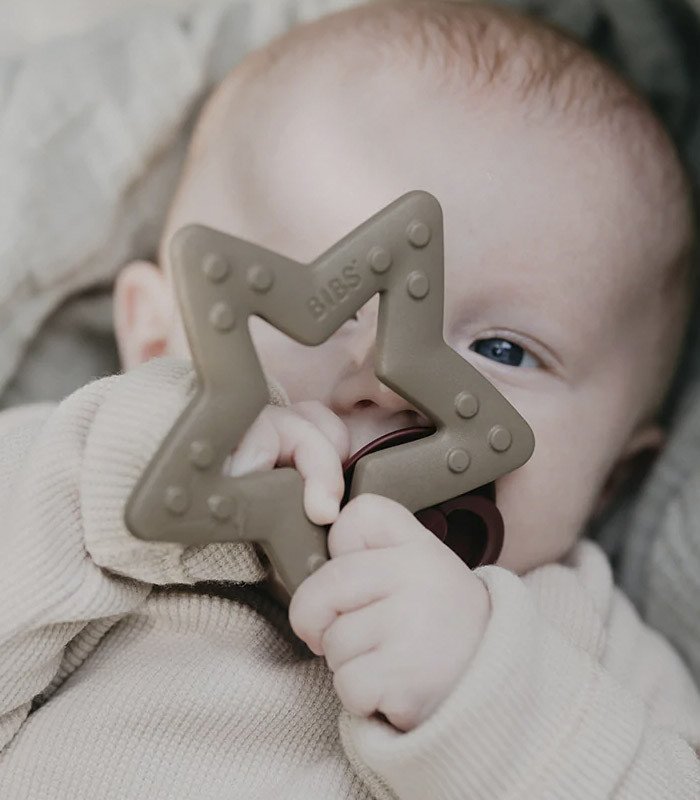 Este precioso mordedor Baby Bitie de Bibs con diseño de estrella es el accesorio ideal para la etapa de dentición de tu bebé. Tiene el tamaño perfecto para que lo puedan agarrar las manos más pequeñas. Sus diferentes texturas ayudan al bebé a calmar el dolor y ayudan a estimular la erupción de las encías que molestan al bebé.