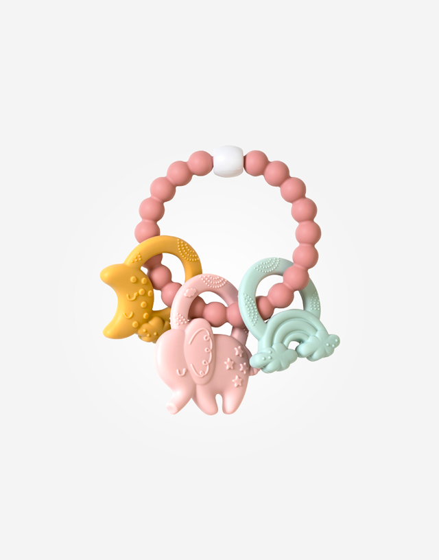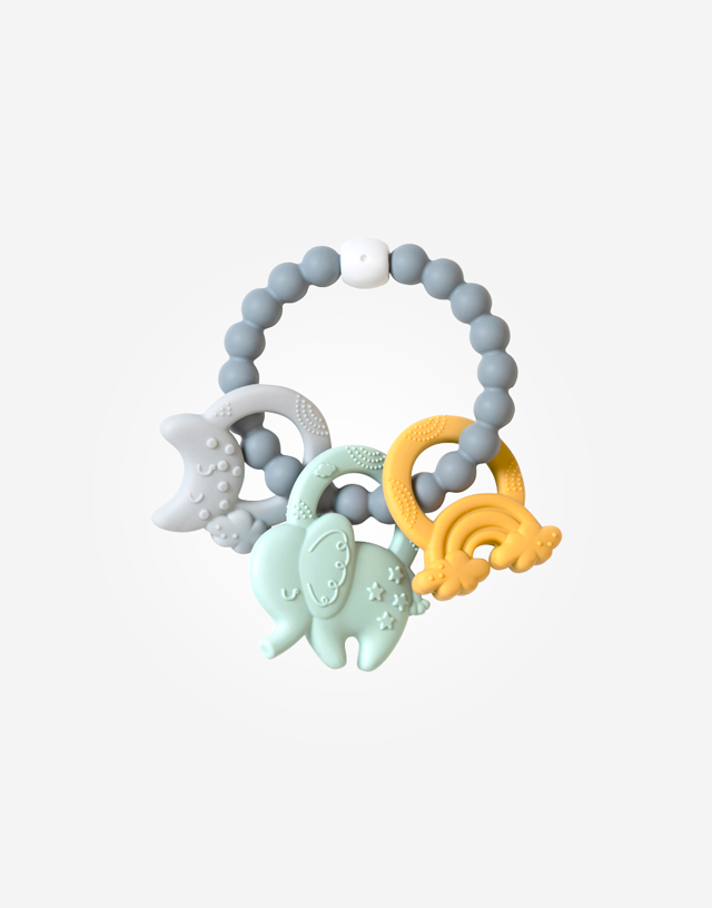 El mordedor Ele-Fun de Saro tiene diferentes texturas: es perfecto para aliviar sus encías cuando más lo necesite. Divertido diseño para pasarlo en grande y que las manos más pequeñas lo agarren fácilmente.