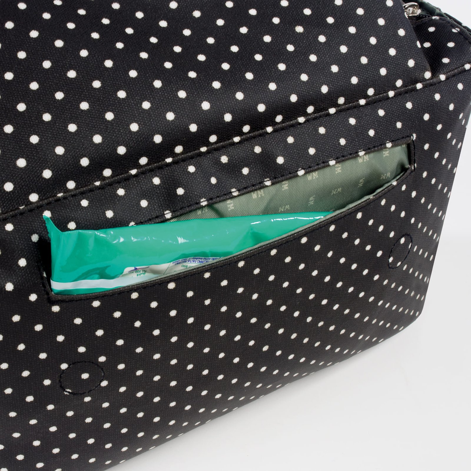 - Aparte de la gran capacidad que tiene, está distribuido para facilitarte la organización, con varios bolsillos exteriores e interiores que te ayudarán a colocar todos tus complementos ordenados y así puedes ubicarlos más fácil cuando vayas a usarlos.