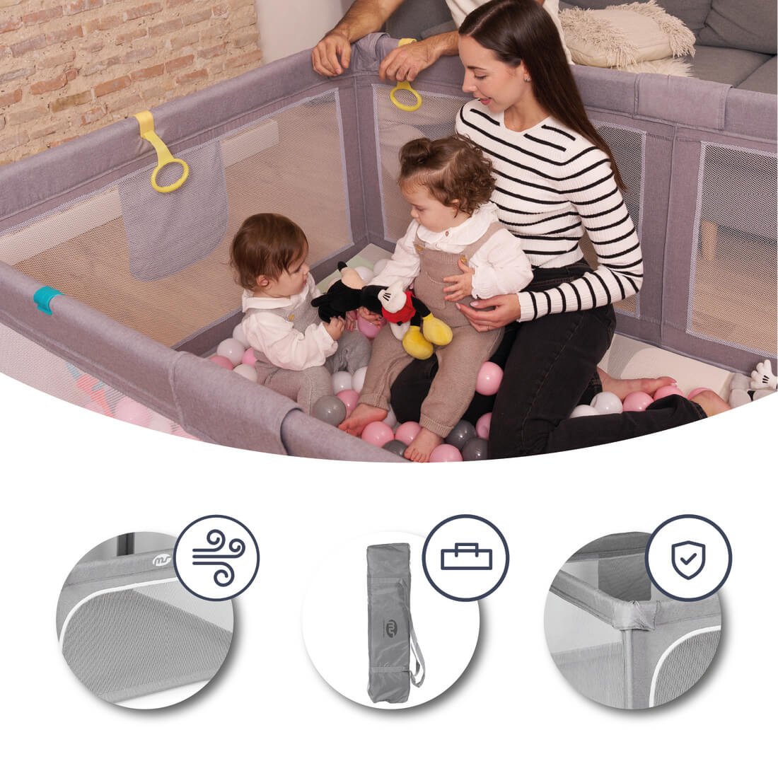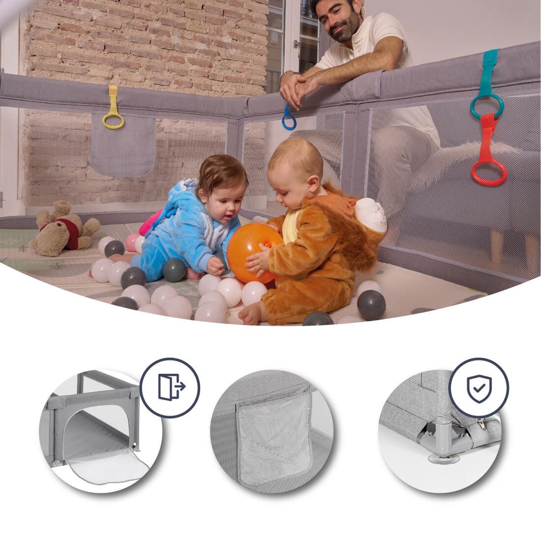 - Este parque de juegos es perfecto para que tu bebé pueda jugar con movimiento libre a la vez que controlado.