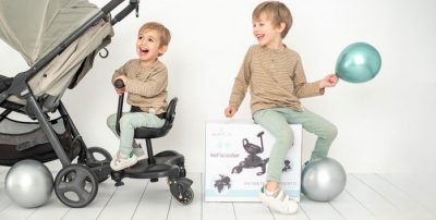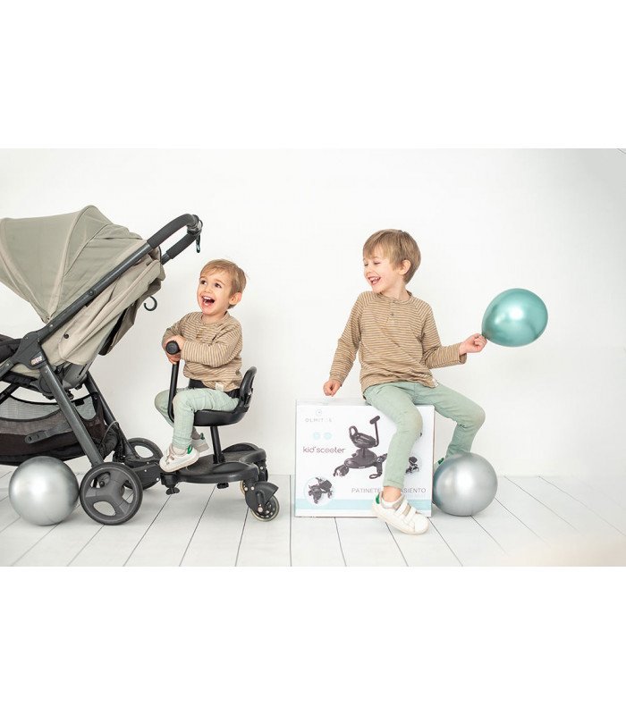 Con el patinete Kidscooter transporta a tu hijo de la manera más cómoda. Bien de pie o sentado, será todo un reto para él acompañar el cochecito de su hermano/a.