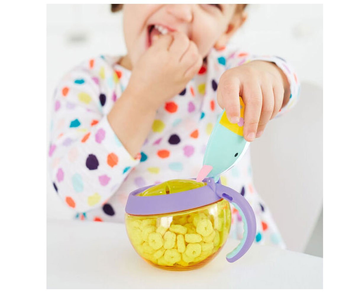 El porta snack de Skip Hop es perfecta para llevar el picoteo. Con fácil agarre y tamaño perfecto.