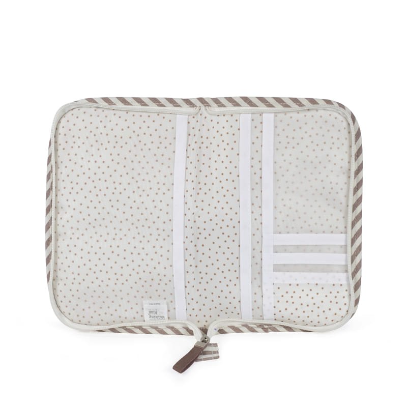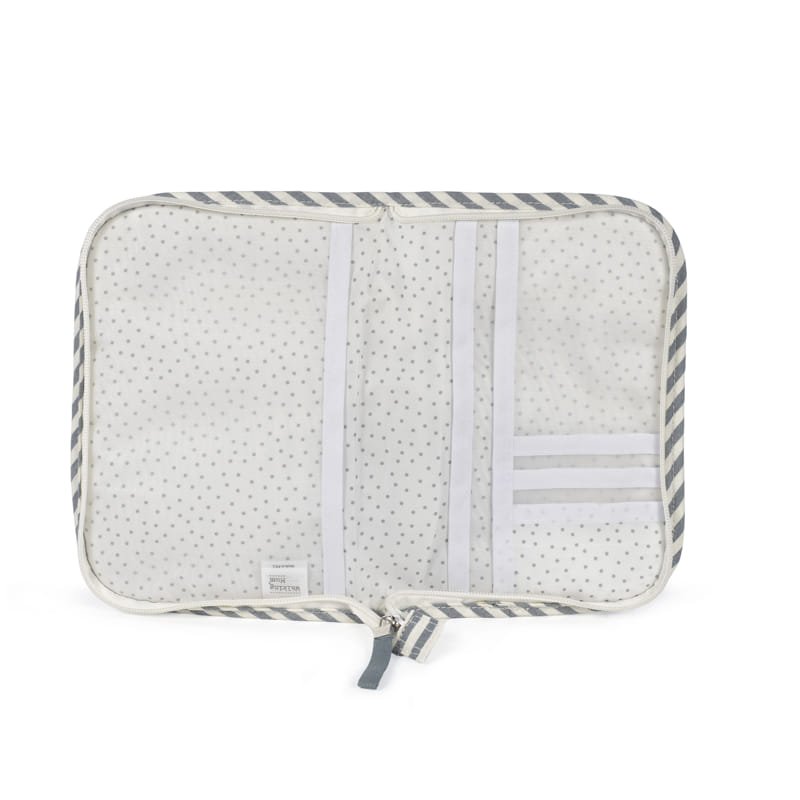 El portadocumentos Praliné Rayas es una funcional carpeta portadocumentos de diseño a juego con la bolsa de maternidad. Un complemento indispensable para llevar contigo a todas partes que te ayudará a tener ordenada toda la documentación y papeles médicos de tu bebé (vacunas, recetas, partida de nacimiento).