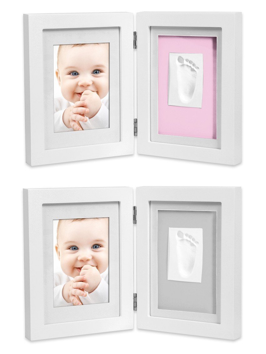 Marco de fotos con su huella para crear recuerdos inolvidables de sus primeros días de vida. El marco tiene el fondo reversible para que puedas elegir el color que más te guste.