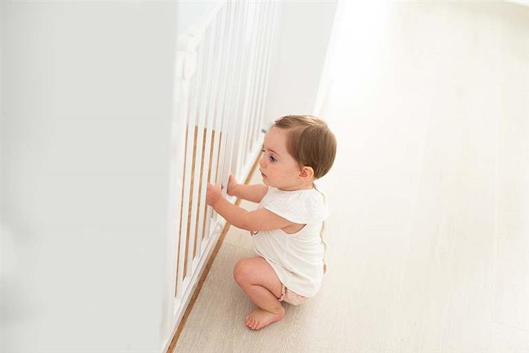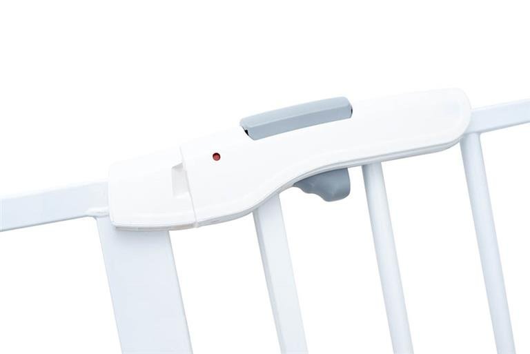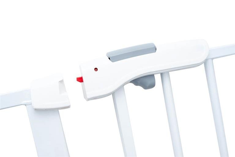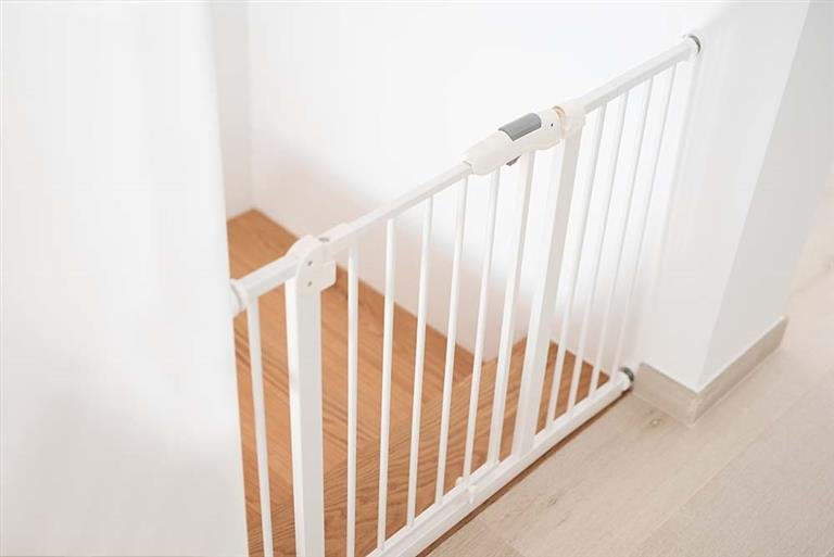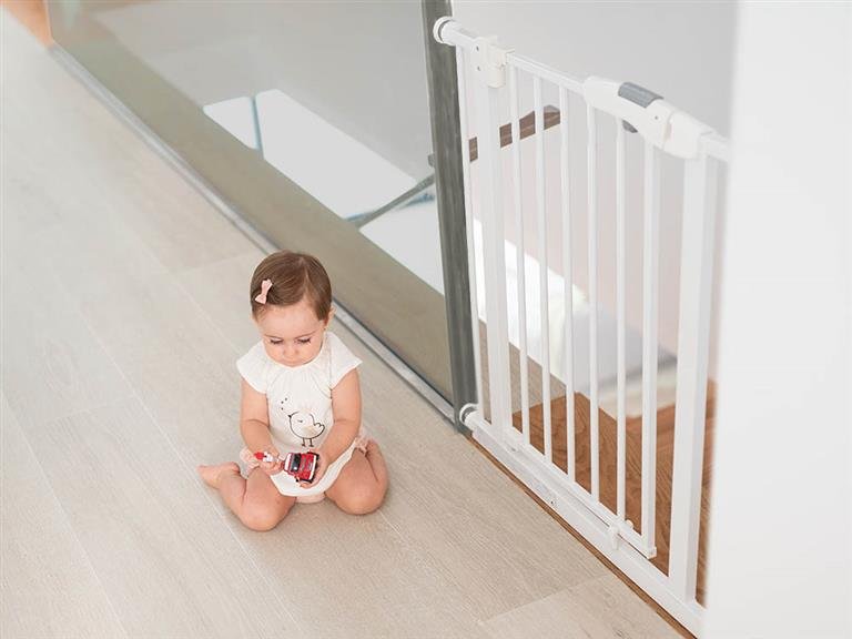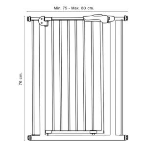 Práctica puerta de seguridad extensible de fácil instalación sin agujeros. Se puede instalar en huecos y puertas de entre 75 y 80 cm y tiene posibilidad de apertura en ambas direcciones