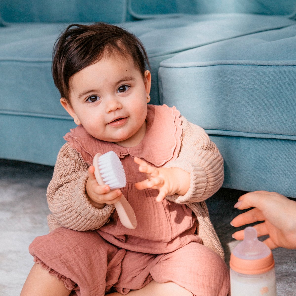- El cepillo para bebé dispone de cerdas delicadas que respetan la suavidad del cuero cabelludo infantil.