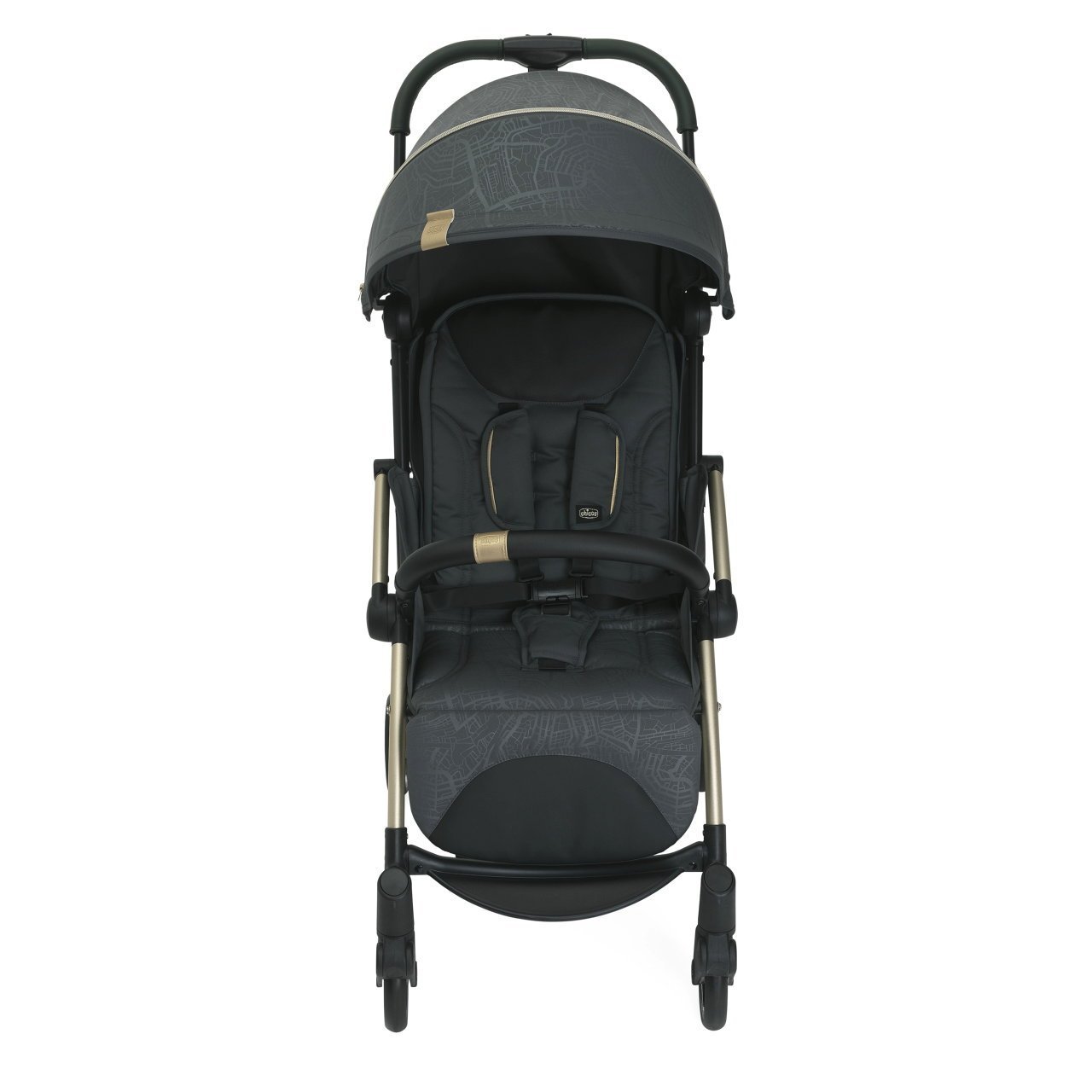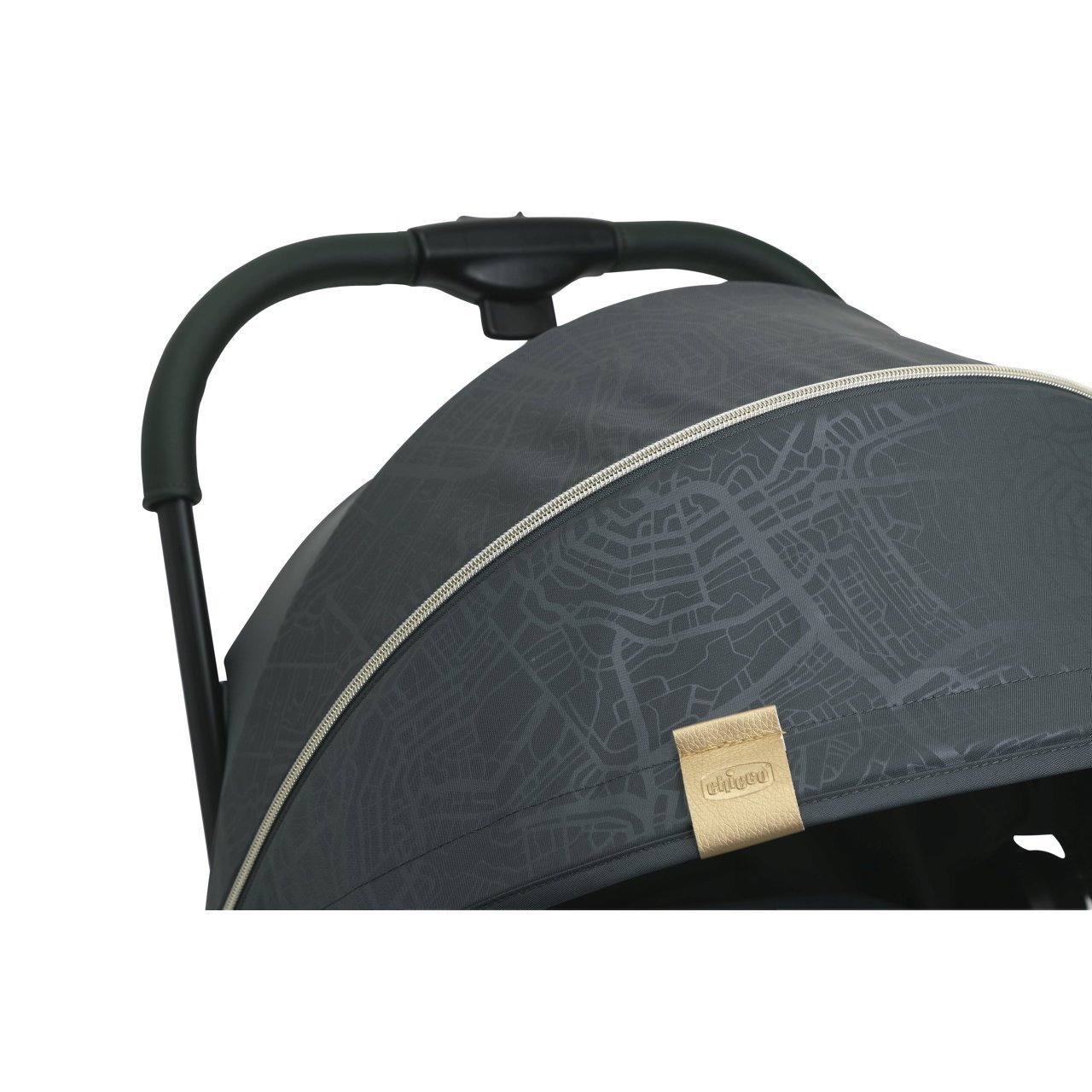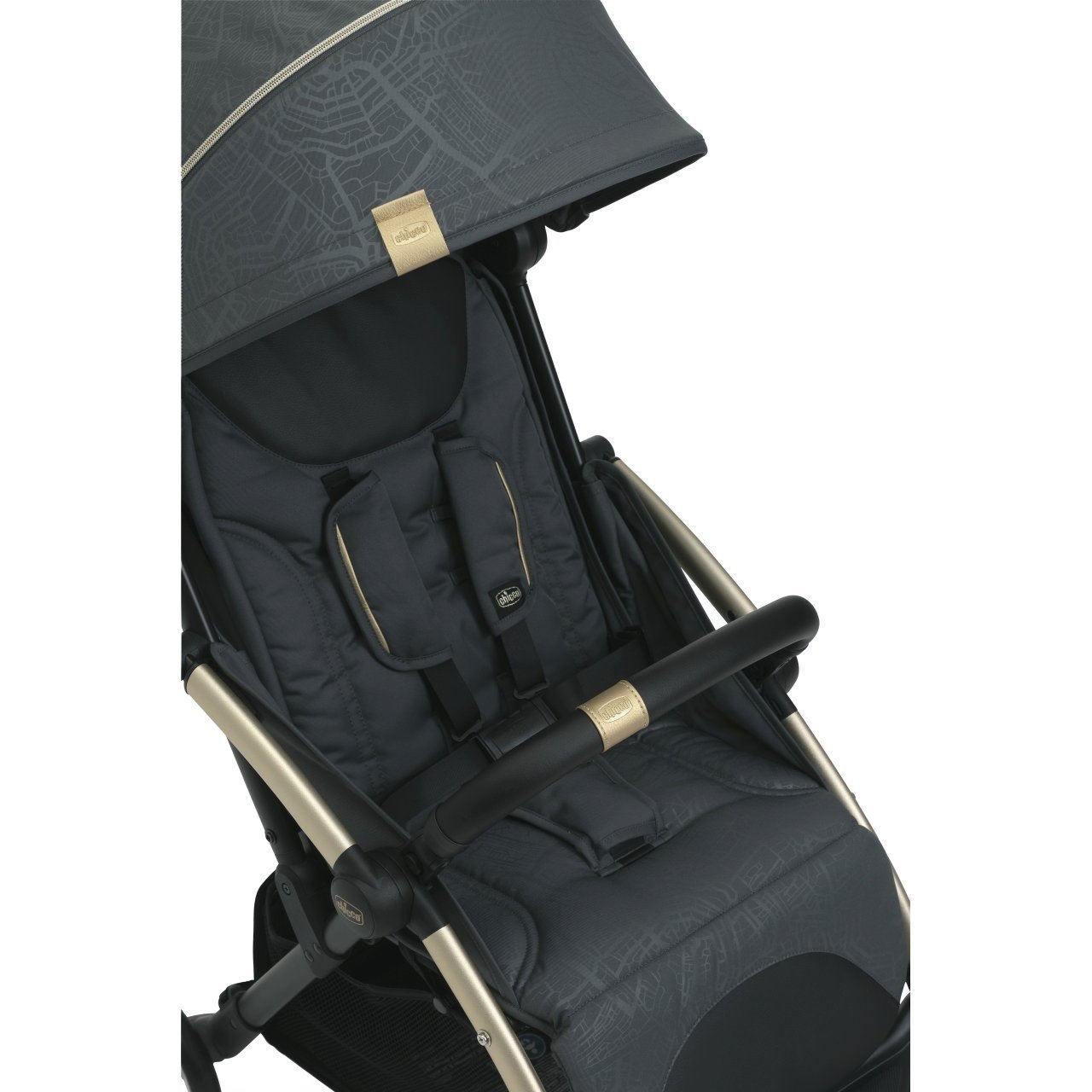 El 60% de los tejidos de esta versión Black Re-Lux están realizados en poliéster 100% reciclado, y la elegancia del color negro, junto con el efecto de tachuelas en 3D y el chasis dorada hacen convierten a Goody Plus Eco+ en un cochecito elegante y sostenible.