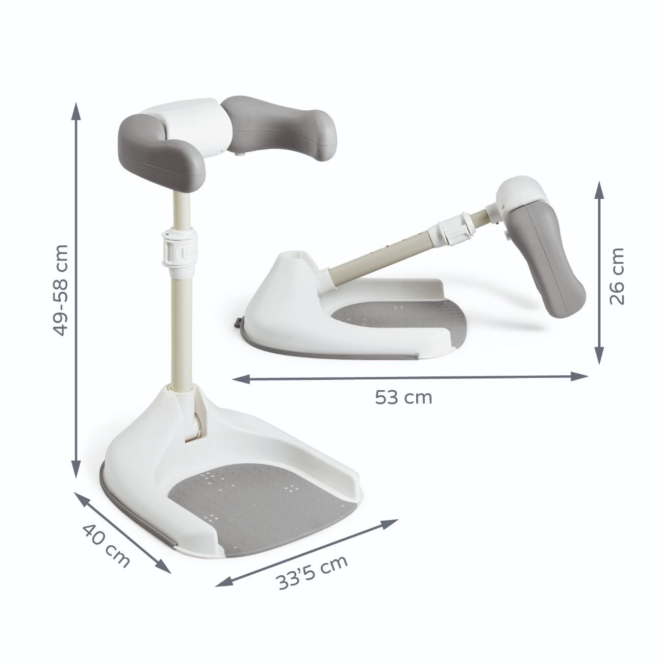 El soporte de baño cuenta con varias posiciones de altura que hará que el producto crezca con su niño/a y también varias posiciones de cintura. Su diseño versátil facilita el cuidado e higiene del bebé, con ajuste personalizado según cada necesidad.