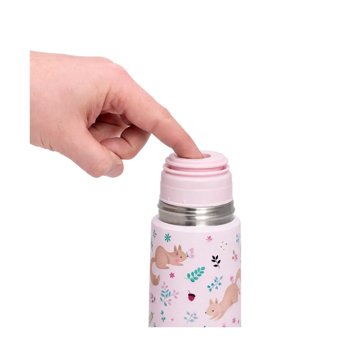 • El termo incorpora un sistema de vertido fácil que permite servir el contenido de forma cómoda y controlada. Su cierre por pulsación evita derrames accidentales, asegurando que no se pierda ni una gota, incluso durante el transporte o el uso diario.