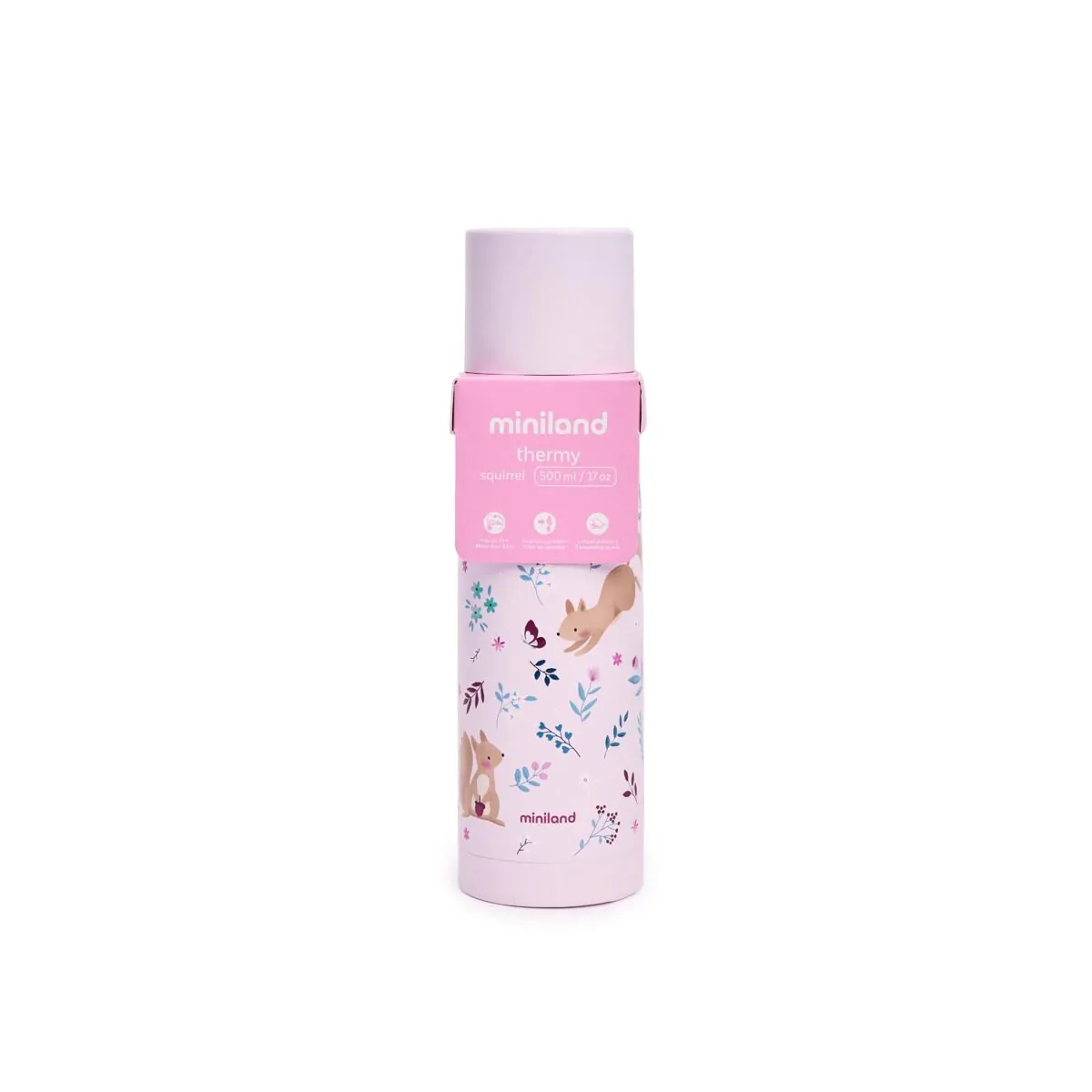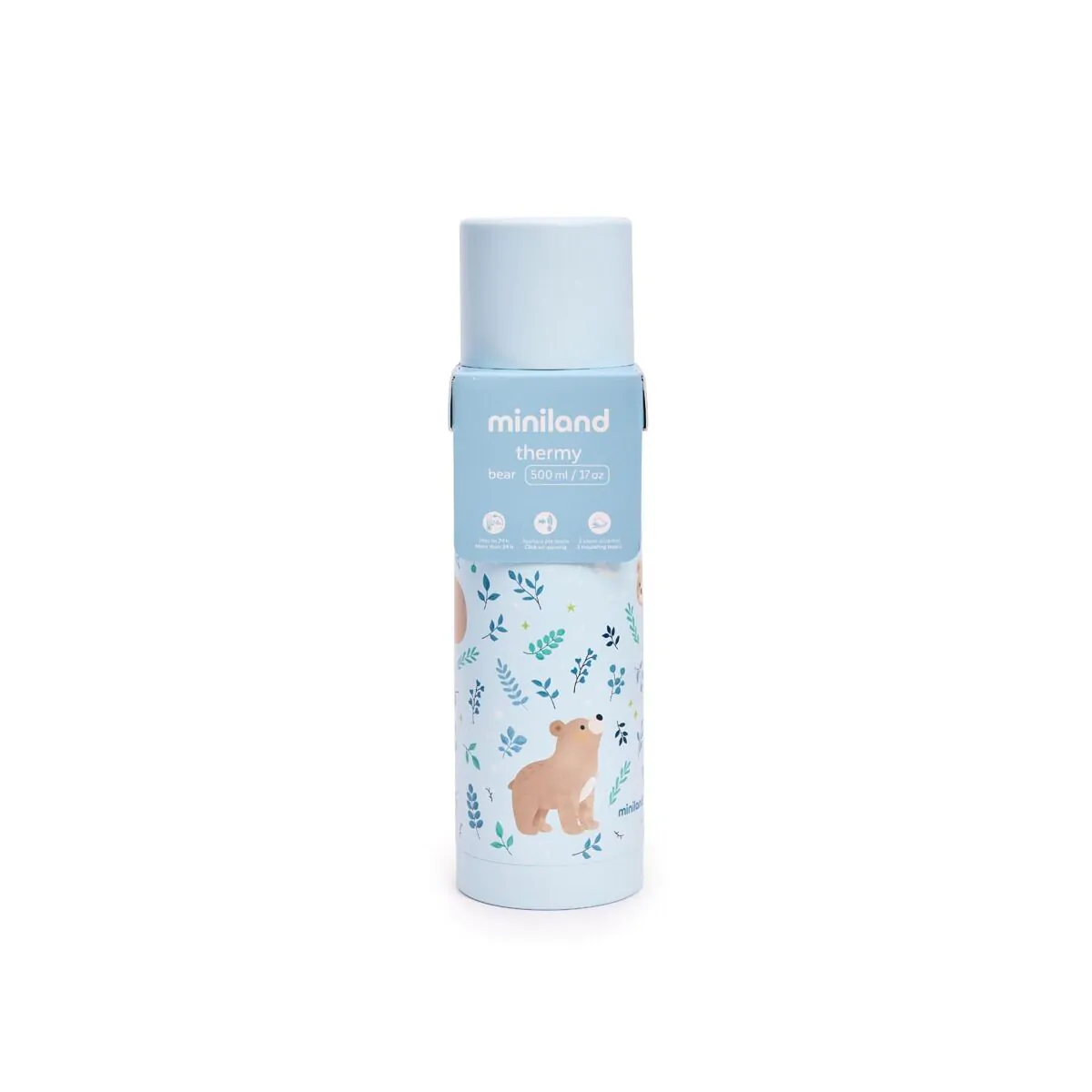 • Thermy 500ml. de Miniland es un termo para líquidos diseñado para conservar la temperatura de bebidas y preparaciones infantiles durante largos periodos de tiempo. Con una capacidad de 500 ml, resulta ideal para las tomas del bebé, ofreciendo una solución práctica tanto en casa como durante paseos o viajes.
