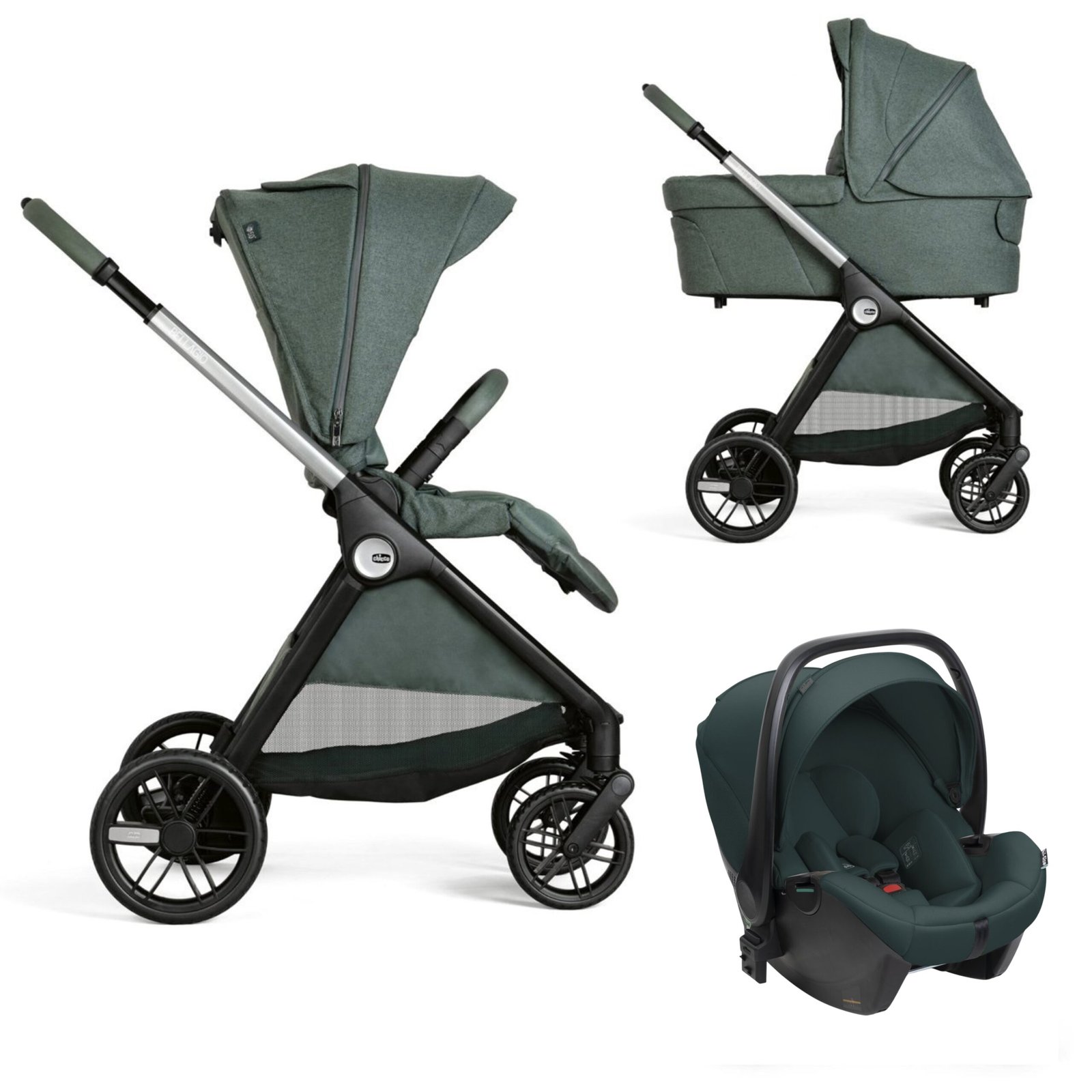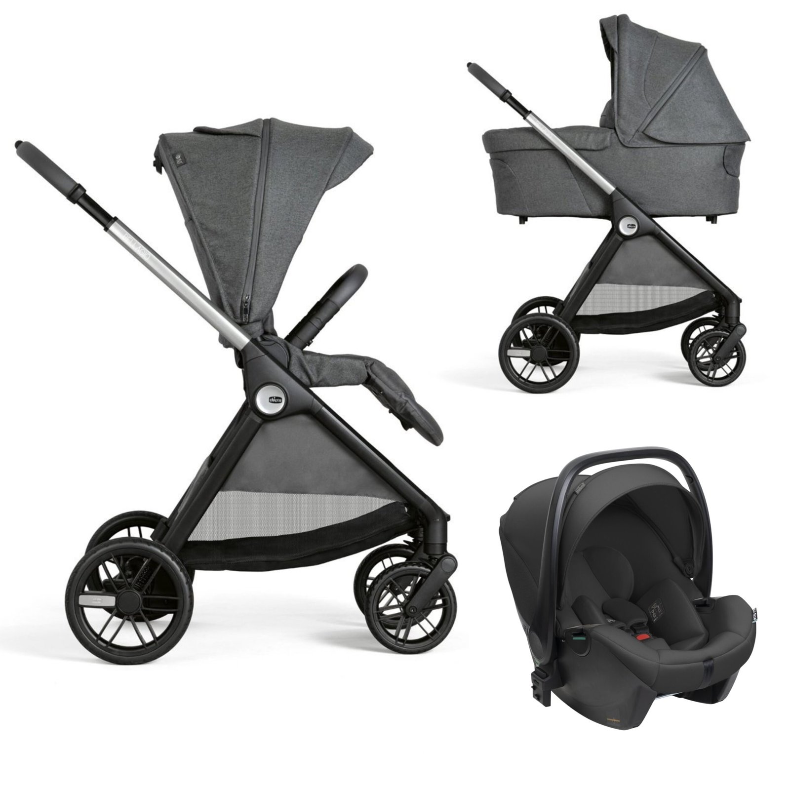 - El capazo destaca por sus detalles premium: placa metálica Chicco, cremalleras reflectantes e inserciones con acabado textil recubierto.