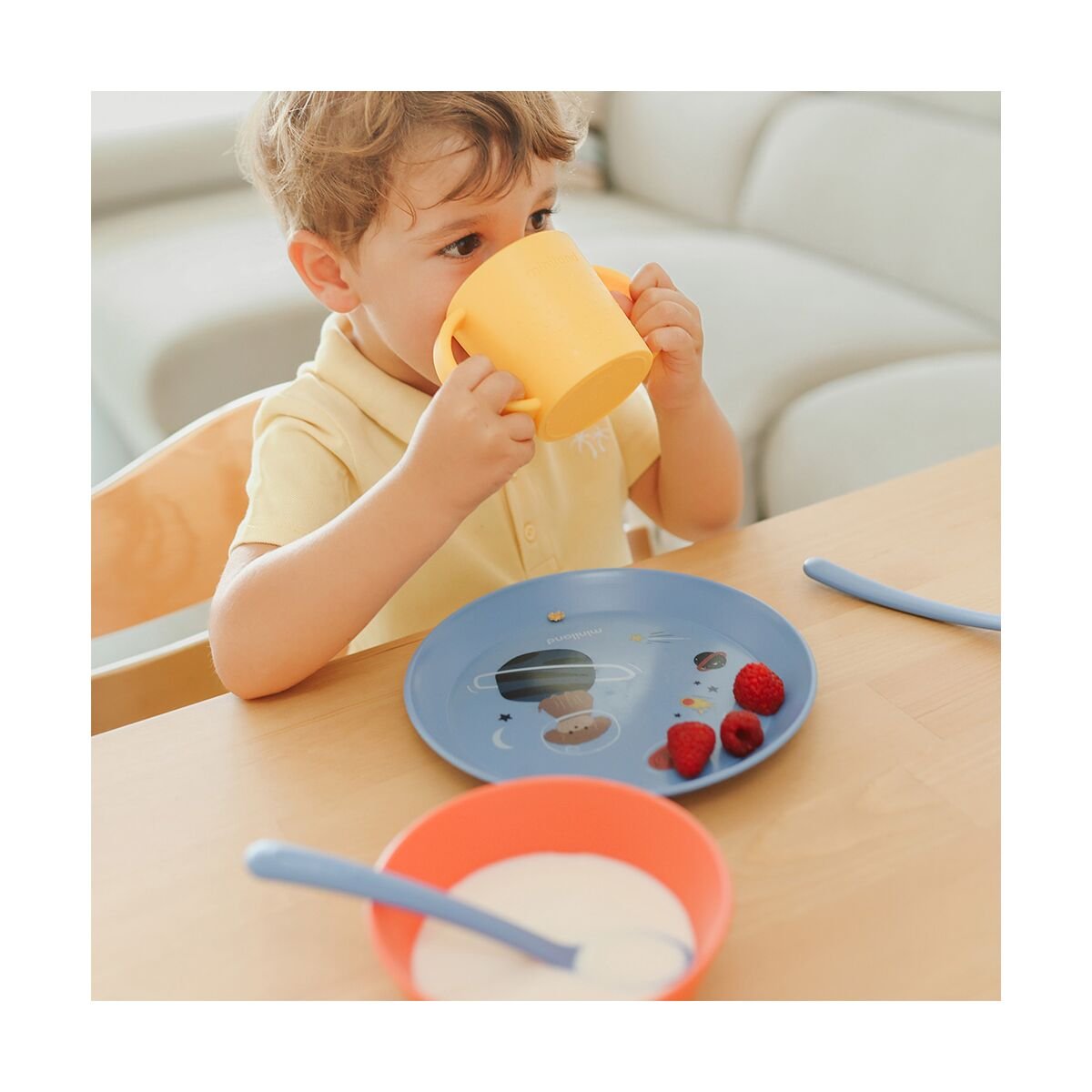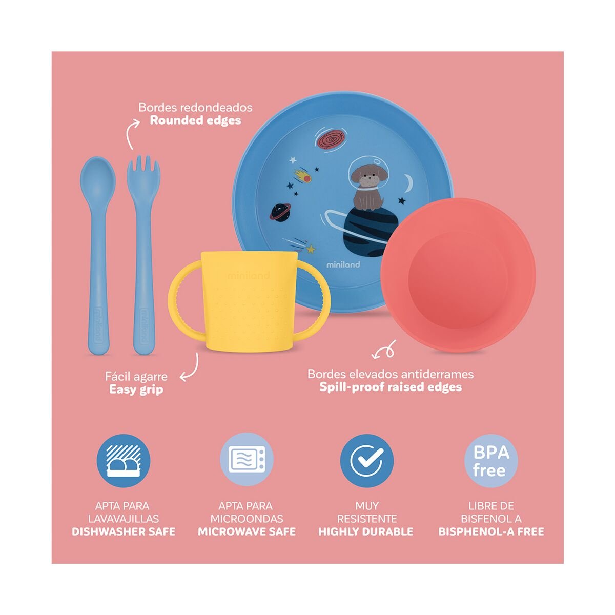 Completa vajilla infantil, diseñada especialmente para que los más pequeños disfruten aprendiendo a comer solitos de manera divertida . Este set incluye todo lo necesario: plato con un valiente perrito explorador , bol con bordes elevados para evitar derrames , cuchara y tenedor con bordes redondeados y una taza de aprendizaje. La taza cuenta con asas ergonómicas que aseguran un agarre cómodo y seguro. ¡Es la opción ideal para fomentar la independencia de tus hijos en la hora de la comida!