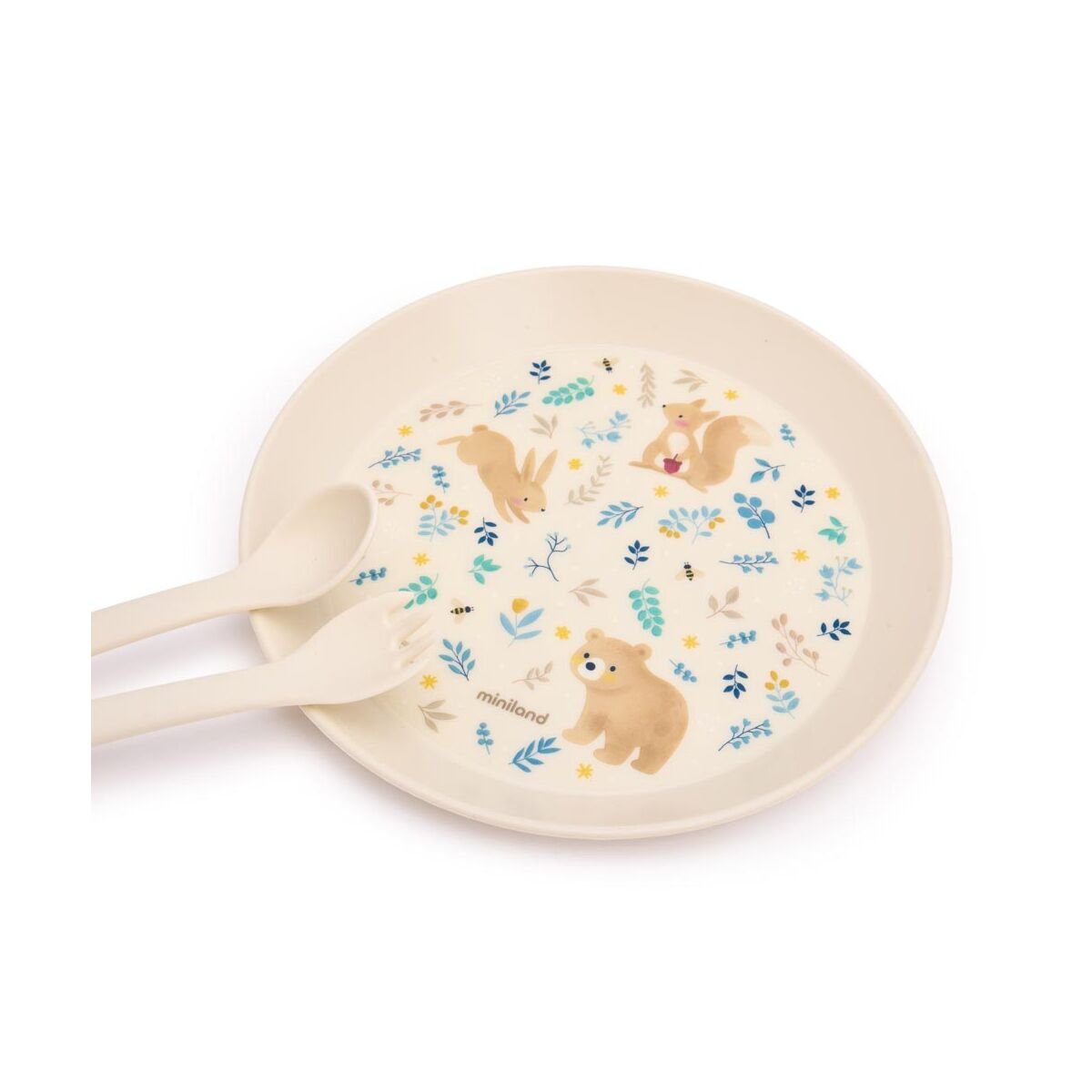 - Meal Set Dreamland de Miniland es una vajilla de aprendizaje diseñada para acompañar a los más pequeños en sus primeras etapas de alimentación. Su diseño funcional y resistente facilita el uso diario, ayudando a fomentar la autonomía del niño durante las comidas.
